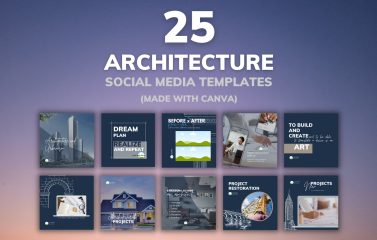 25 professionally designed Architecture Social Media posts for independent Architects, Architectural firms and Digital marketers to attract new leads, grow followers, and close deals.