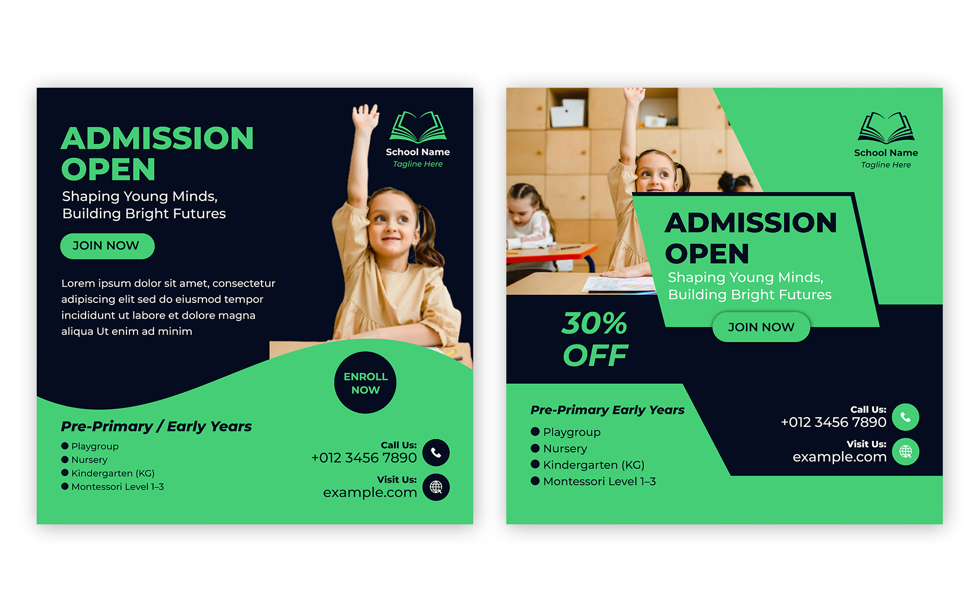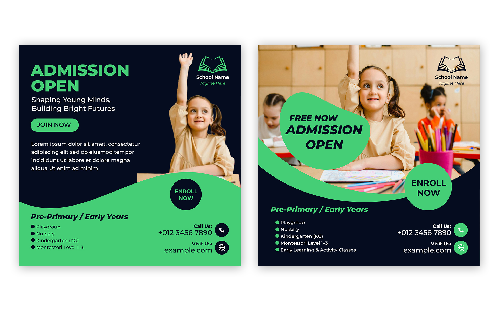 5 Educational Social Media Templates | Editable PSD Posts for Online Courses & School Promotions
