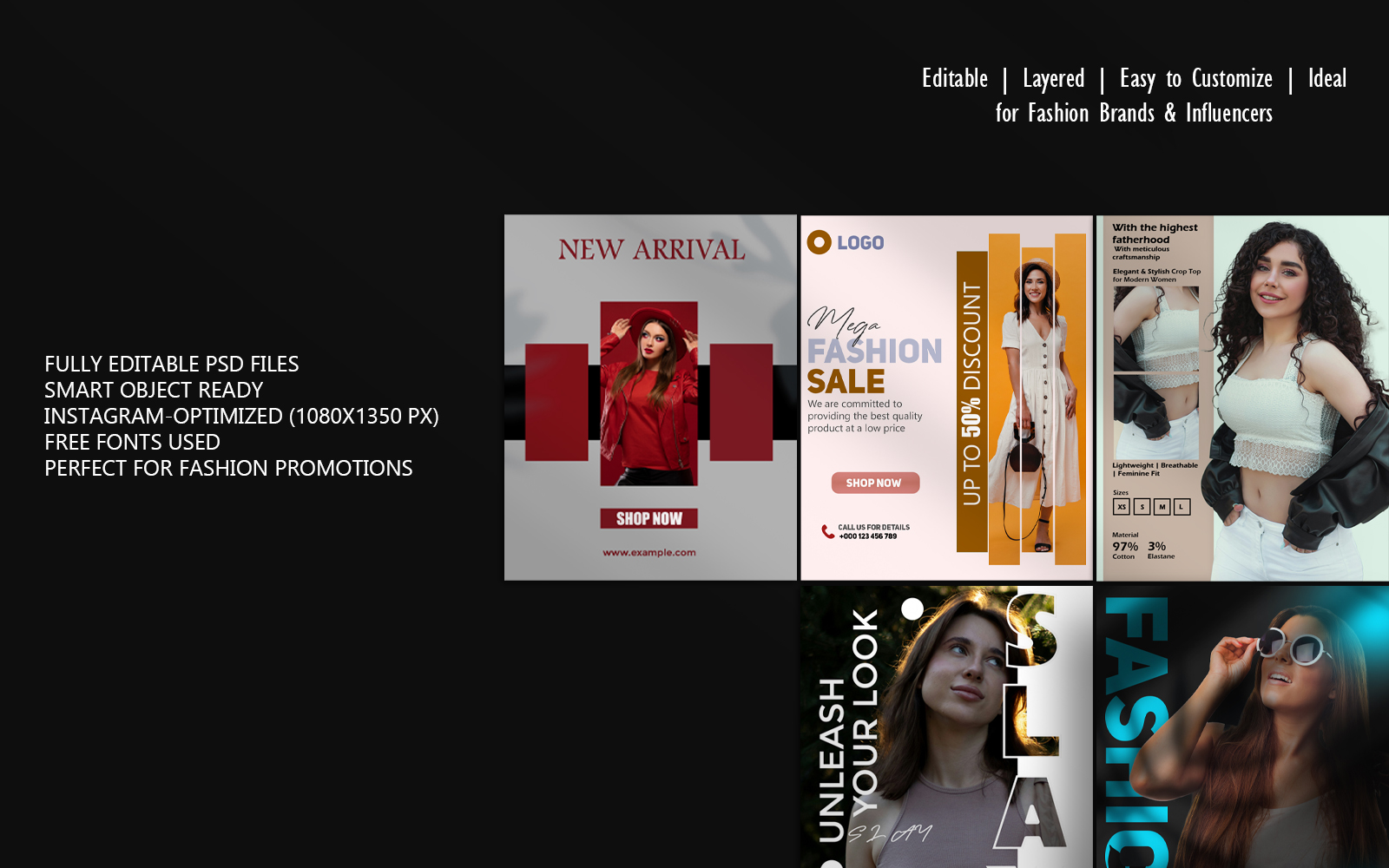 Ideal for fashion businesses, online boutiques, and marketers looking to grow engagement and drive traffic through stylish social media content. All layers are organized and easy to customize for your brand.