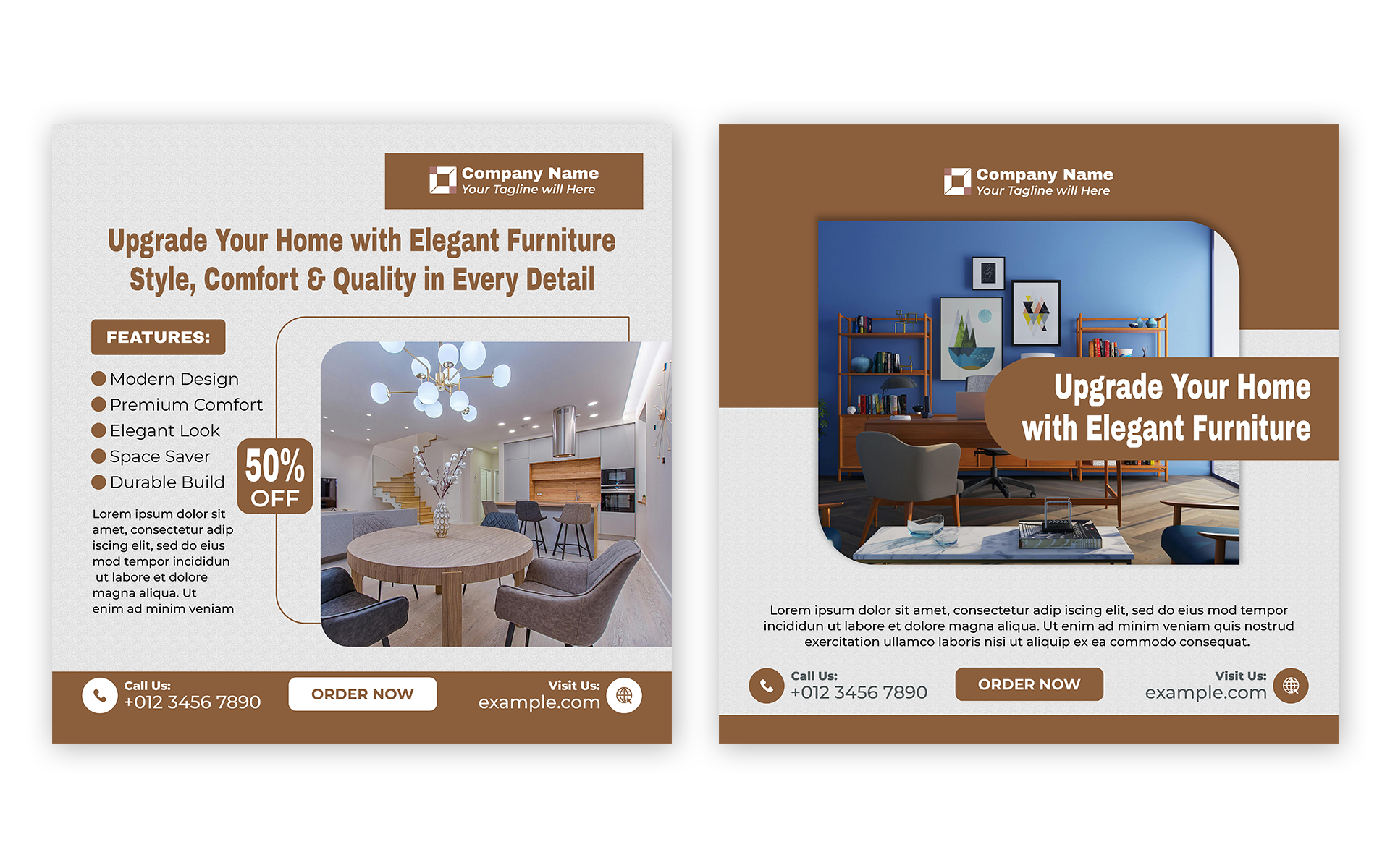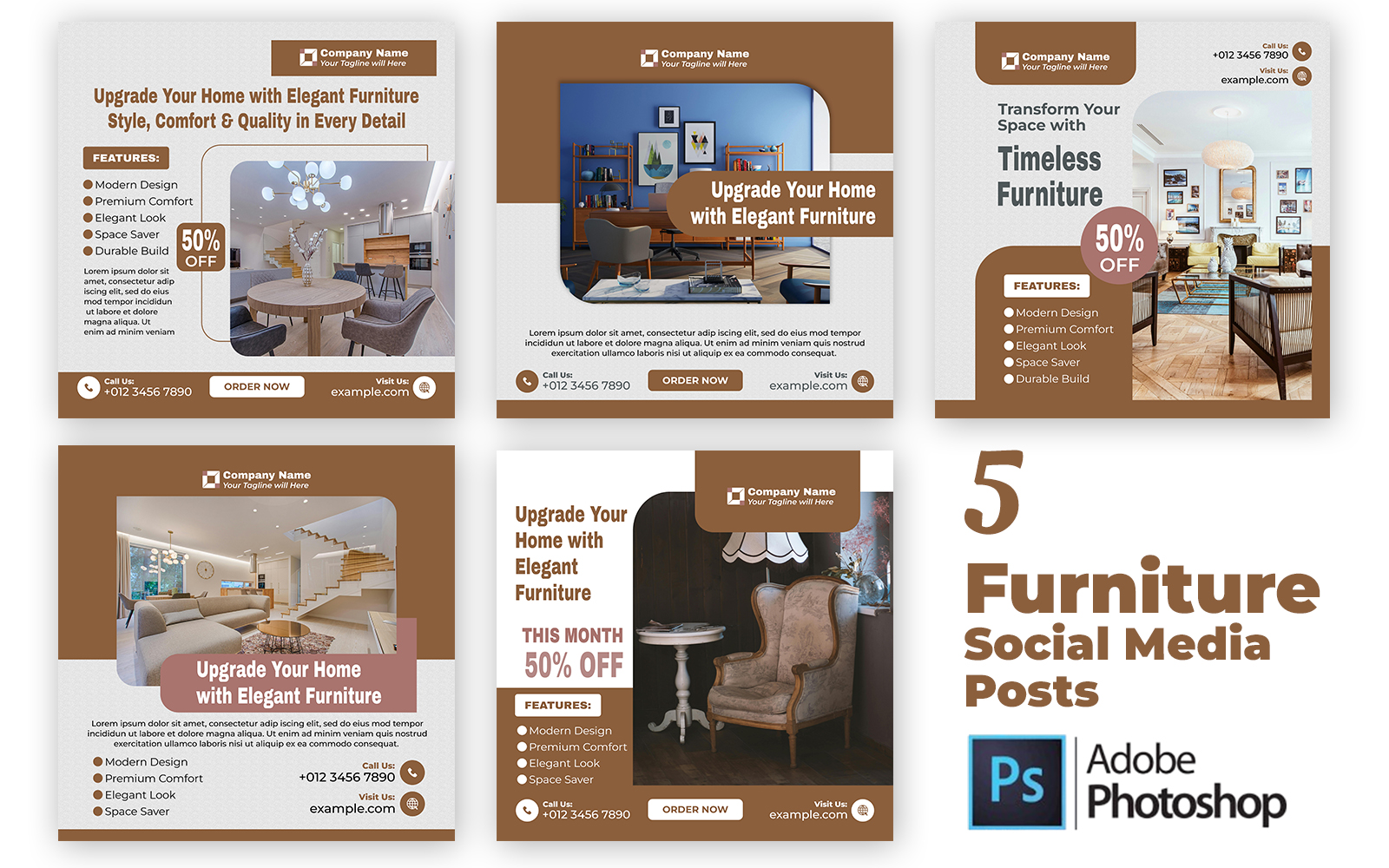Looking to make your furniture brand stand out on social media? This bundle of 5 professionally designed Furniture Social Media Post Templates is just what you need. Created in Adobe Photoshop, these templates are fully editable, allowing you to customize text, colors, images, and branding easily. Whether you're promoting new arrivals, discount offers, interior tips, or furniture collections — these designs will help your content shine on Instagram, Facebook, and more.