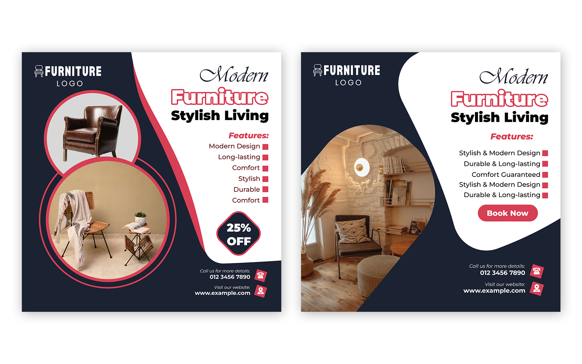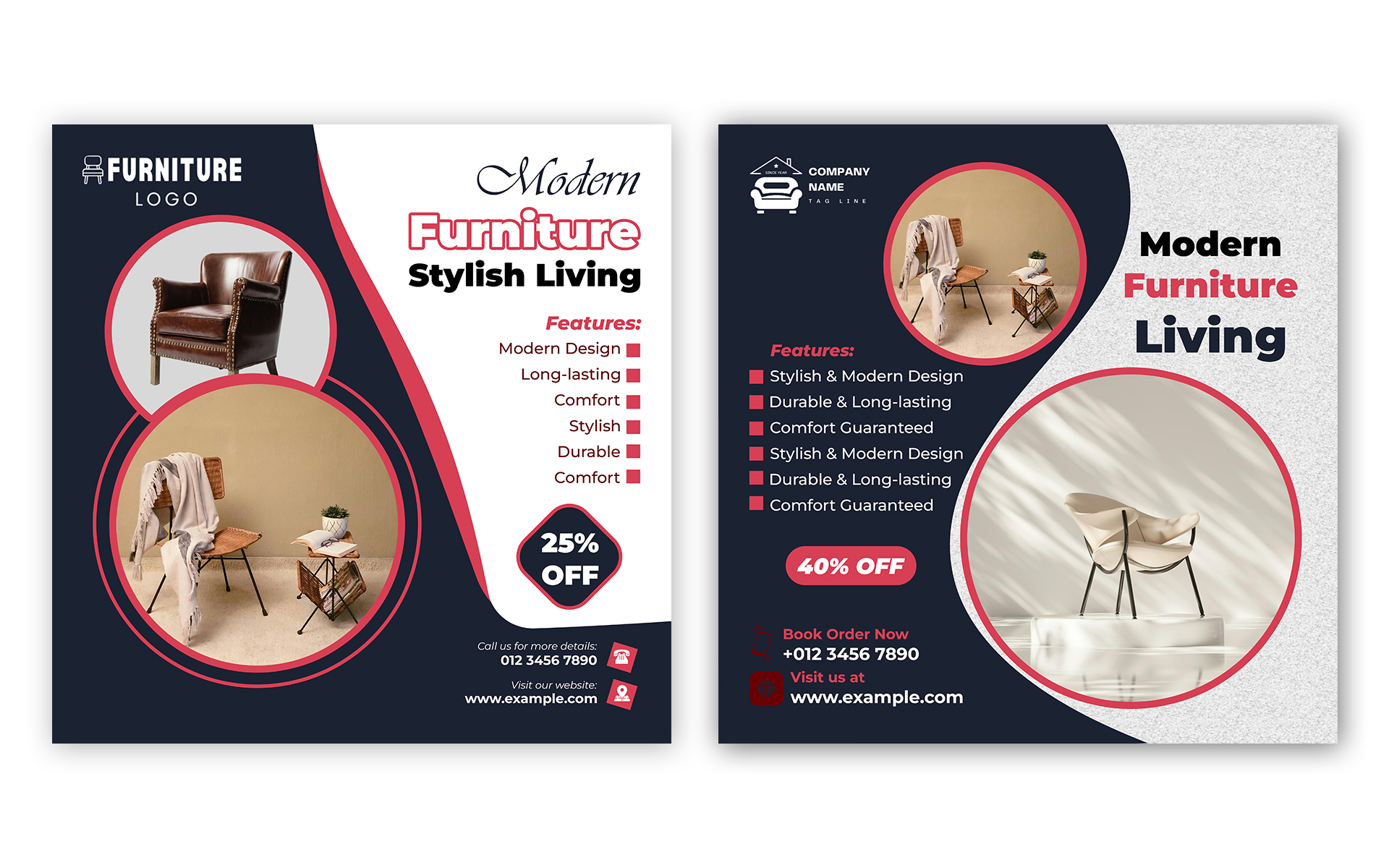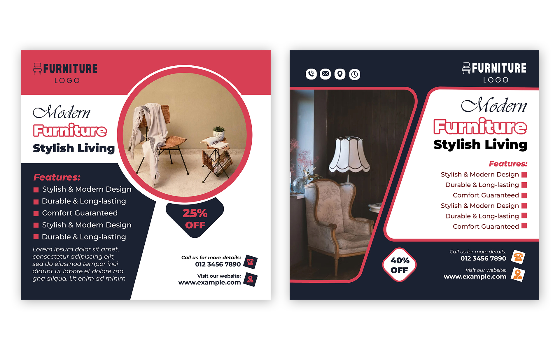 Add a touch of artistic charm to your brand with this set of 5 furniture post templates designed in Adobe Photoshop. Perfect for furniture boutiques, home decor brands, and interior designers who love a cozy yet eclectic vibe, these templates combine earthy colors, natural textures, and creative layouts. Use them to promote furniture collections, seasonal discounts, or decor styling ideas on Instagram and Facebook. Fully layered PSD files make customization of images, colors, and text quick and effortless.