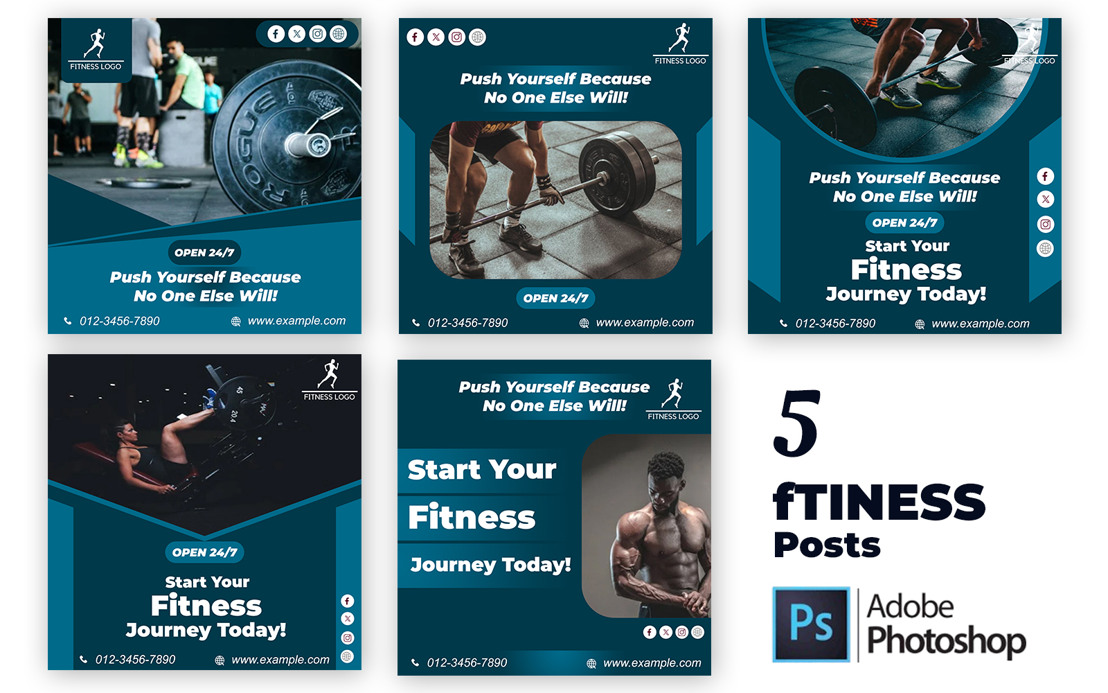 5 Gym Workout and Yoga Social Media Templates | Editable PSD Posts for Fitness Branding