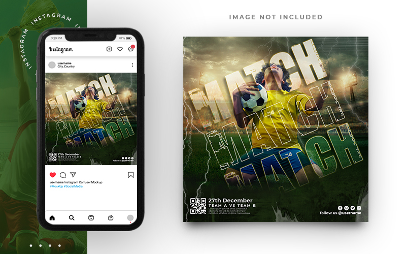 This is a square banner football player social media template, we made this template to promote your football match for social media like Instagram, Twitter, Facebook, marketing, event, etc. You can easy edit all element and change your image because we made for editable and customizable.