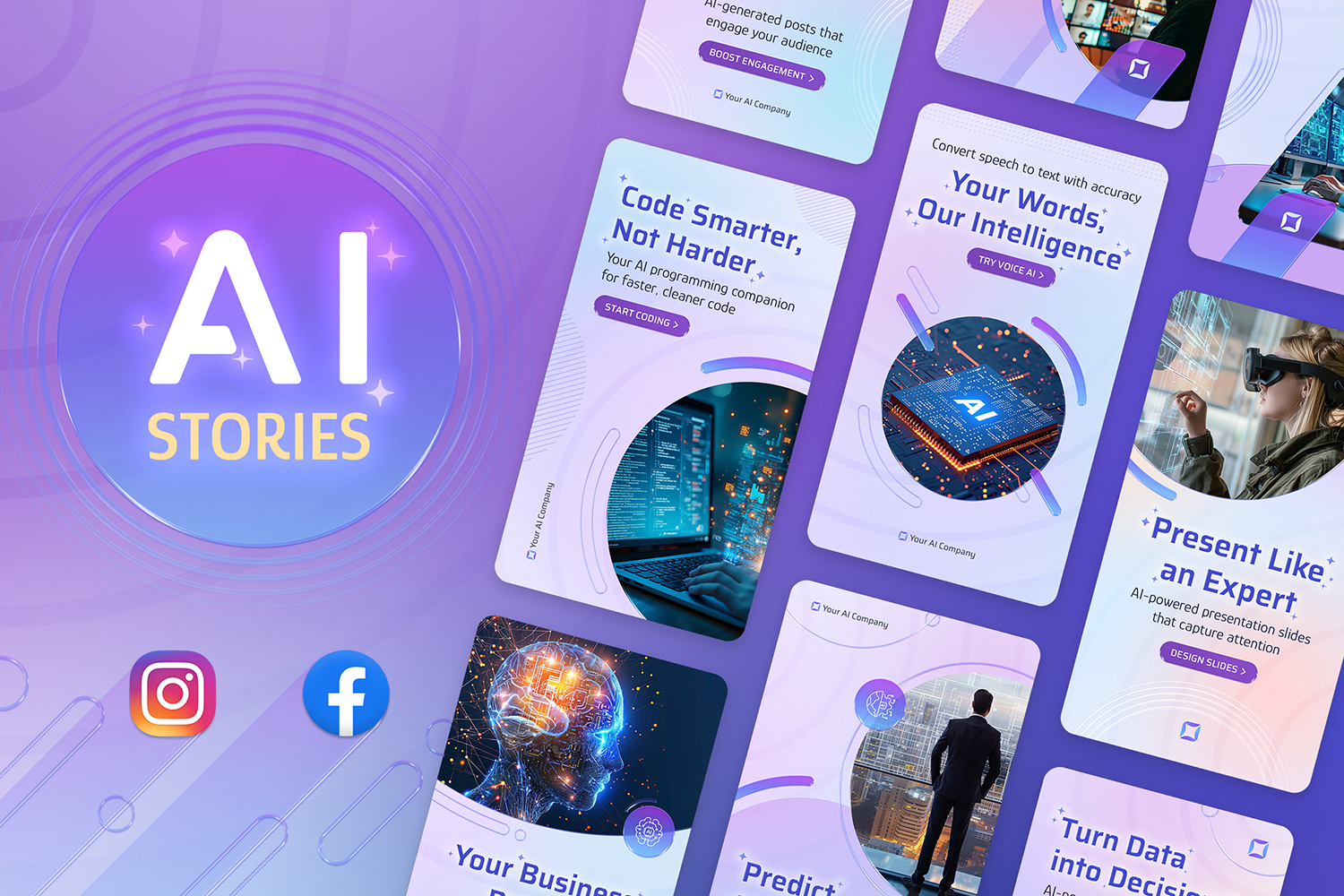 - 9 artificial intelligence story templates (1080 x 1920 px).