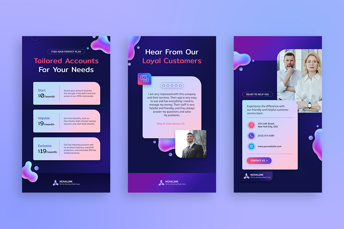 Who can benefit from these social media story templates? Any company operating in the financial services sector looking to enhance their online presence and drive customer engagement. Whether you’re a fintech disruptor revolutionizing the industry or a traditional bank embracing digital transformation, our templates are your secret weapon for success.