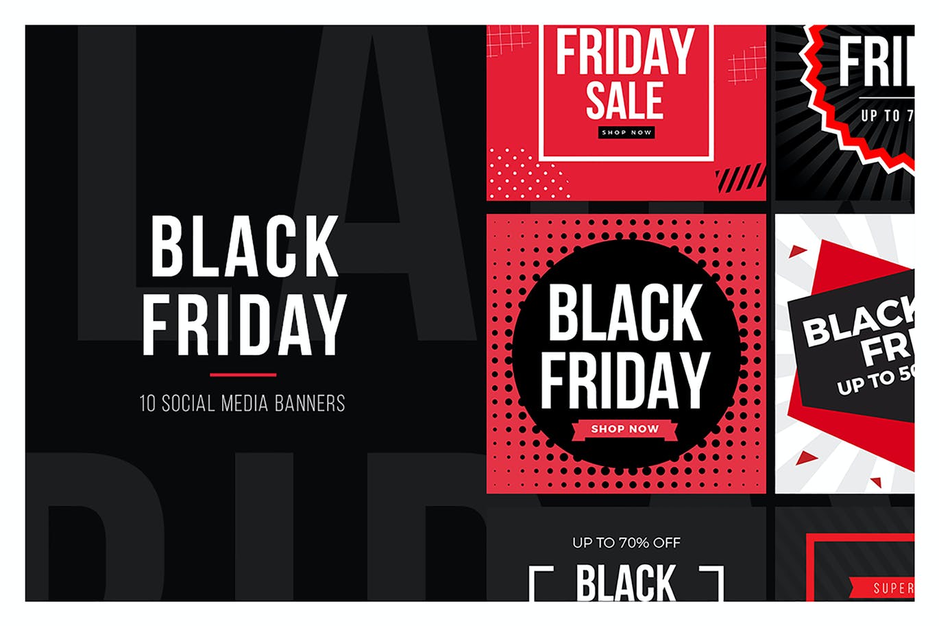 Create your next Black Friday social media banner in no time with this collection of creative and professional Black Friday Social Media Banners V3. Let your followers know about your products with any or all of these 10 unique designs ready to use.