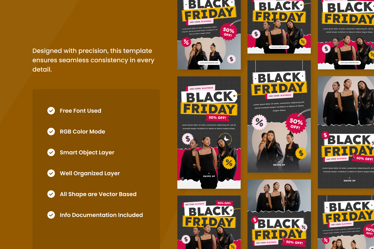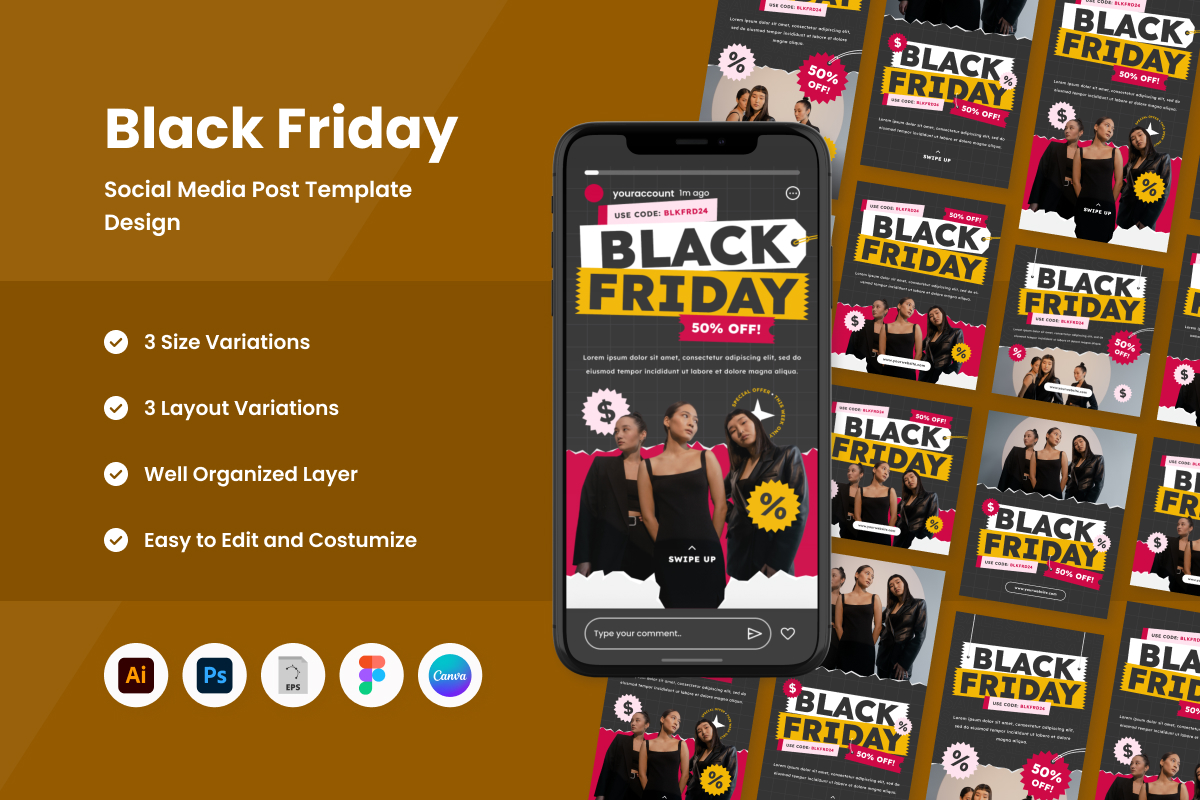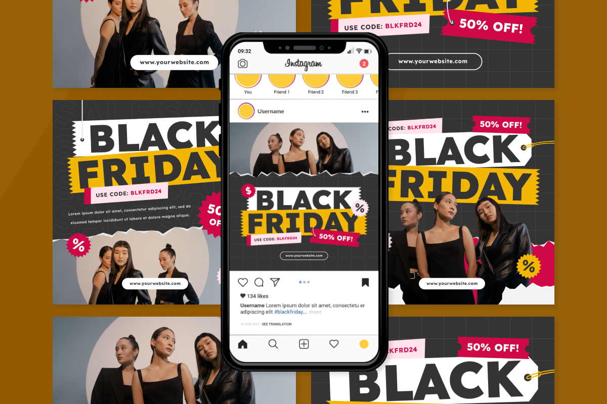 Highlight your Black Friday deals in style with this clean and impactful template. With eye-catching elements, it’s ideal for brands looking to boost visibility and drive sales on social media with ease.