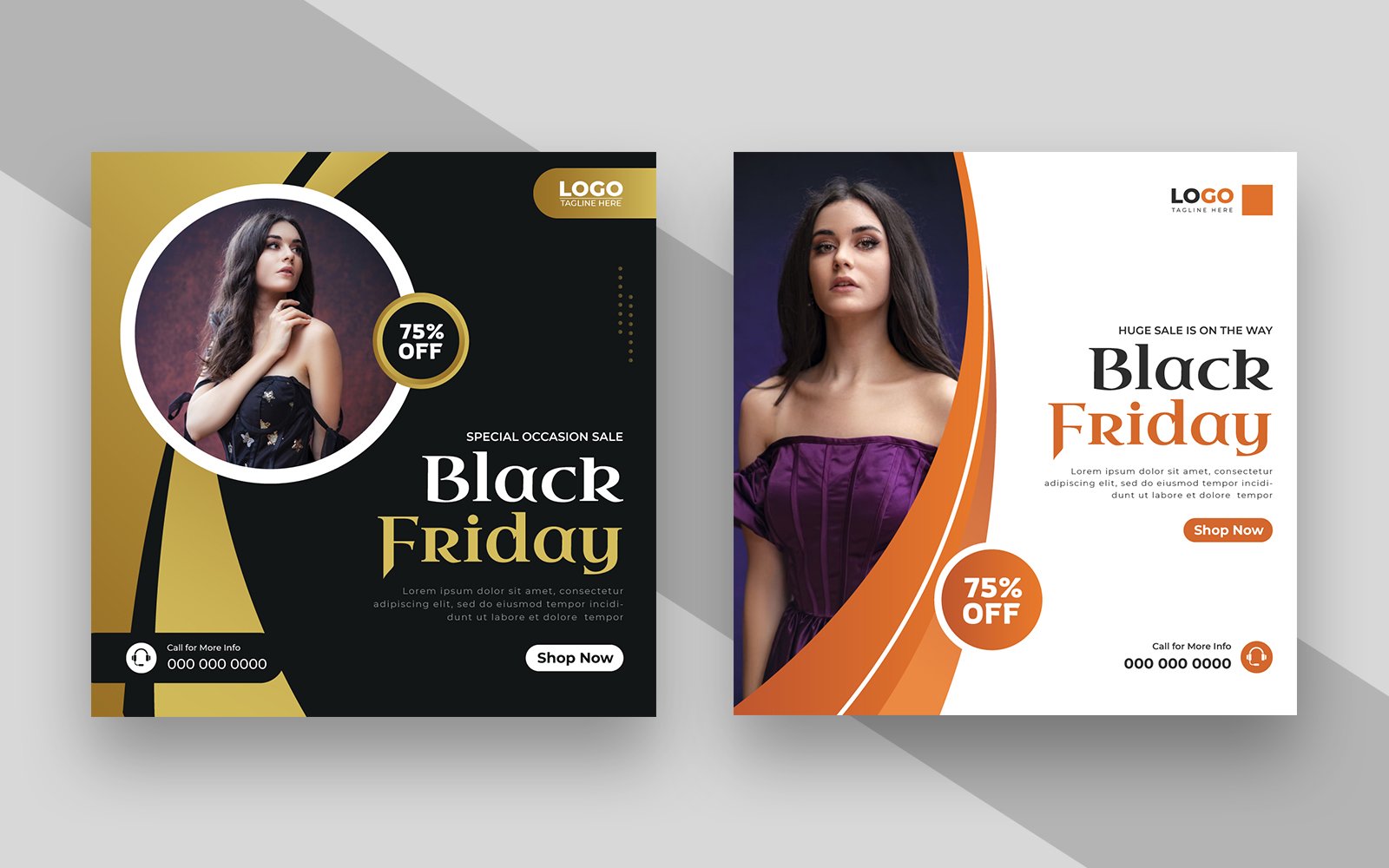 Boost your Black Friday marketing with this bold and stylish Black Friday Sale Social Media Instagram Post Template, professionally designed in Adobe Illustrator. Featuring eye-catching typography, dynamic layouts, and a powerful contrast color scheme, this template is perfect for highlighting massive discounts, limited-time deals, and special holiday offers. Fully customizable, you can easily modify text, colors, and images to match your branding and campaign needs. Ideal for online stores, fashion brands, electronics, retail promotions, and more. Deliver a polished and professional promotional message that increases engagement and encourages customers to shop this Black Friday. Make your sale stand out in every feed!