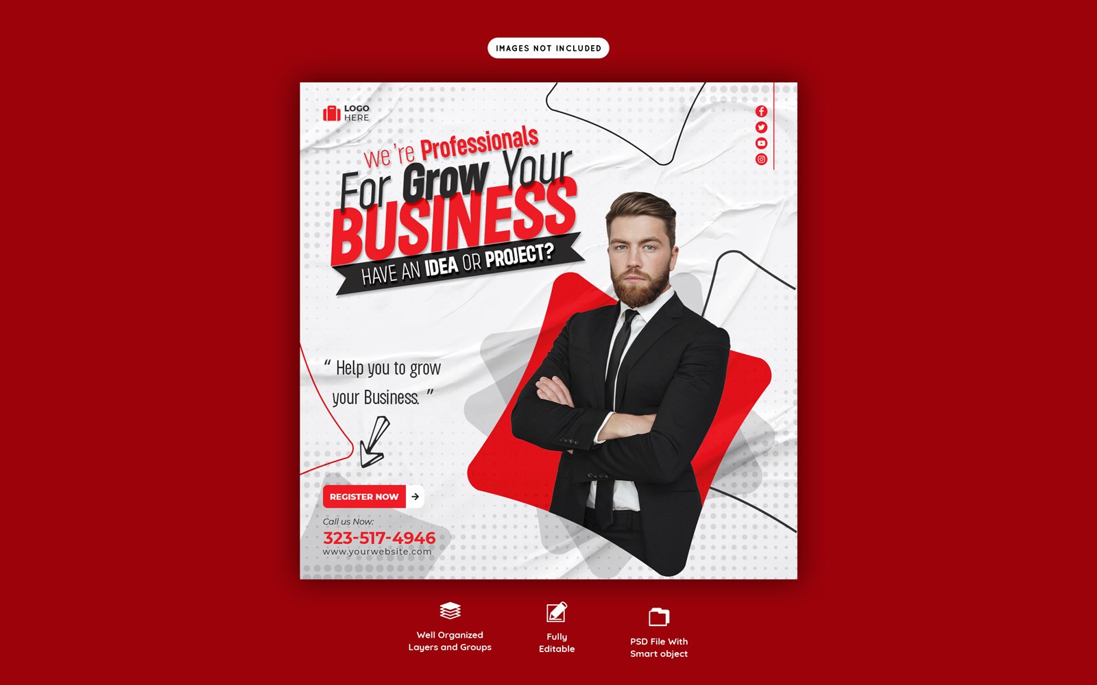 Digital marketing expert agency and corporate social media post template design are perfect for your business promotion. Ready to use for Multipurpose uses. This Promotion template best for any personal or corporate use. All main elements are editable and customizable. You can change image with the smart object. Latest design and easily photo change option.