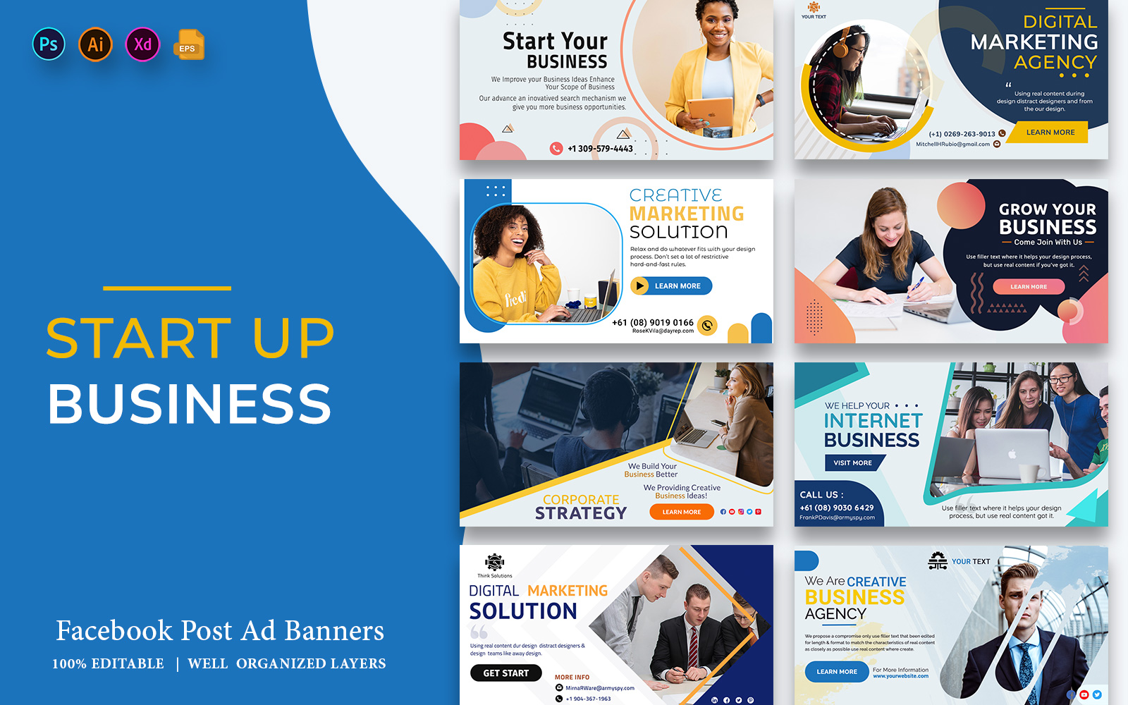 This Facebook Ad Banner Templates contains 10 Beautiful and Elegant designs. Each templates are fully customizable and compatible with Adobe Photoshop, Illustrator and Adobe XD. You can easily update your Facebook Ad Banner in a Stylish and Colorful..!