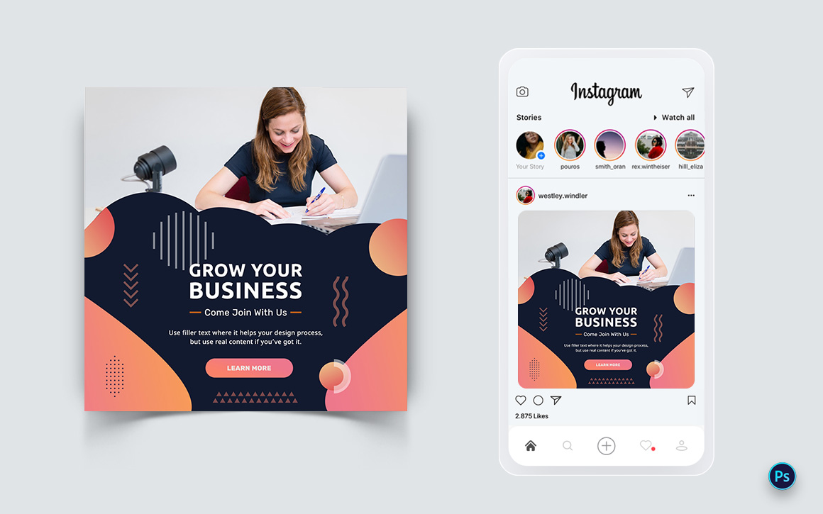Beautiful and Elegant Social Media Instagram Post Template. This Template is fully customizable and compatible with Adobe Photoshop. PSD Files Included. Pixel Perfect. Modern and Creative Design. You can easily update your Social Media Instagram Post in a Stylish and Colorful!