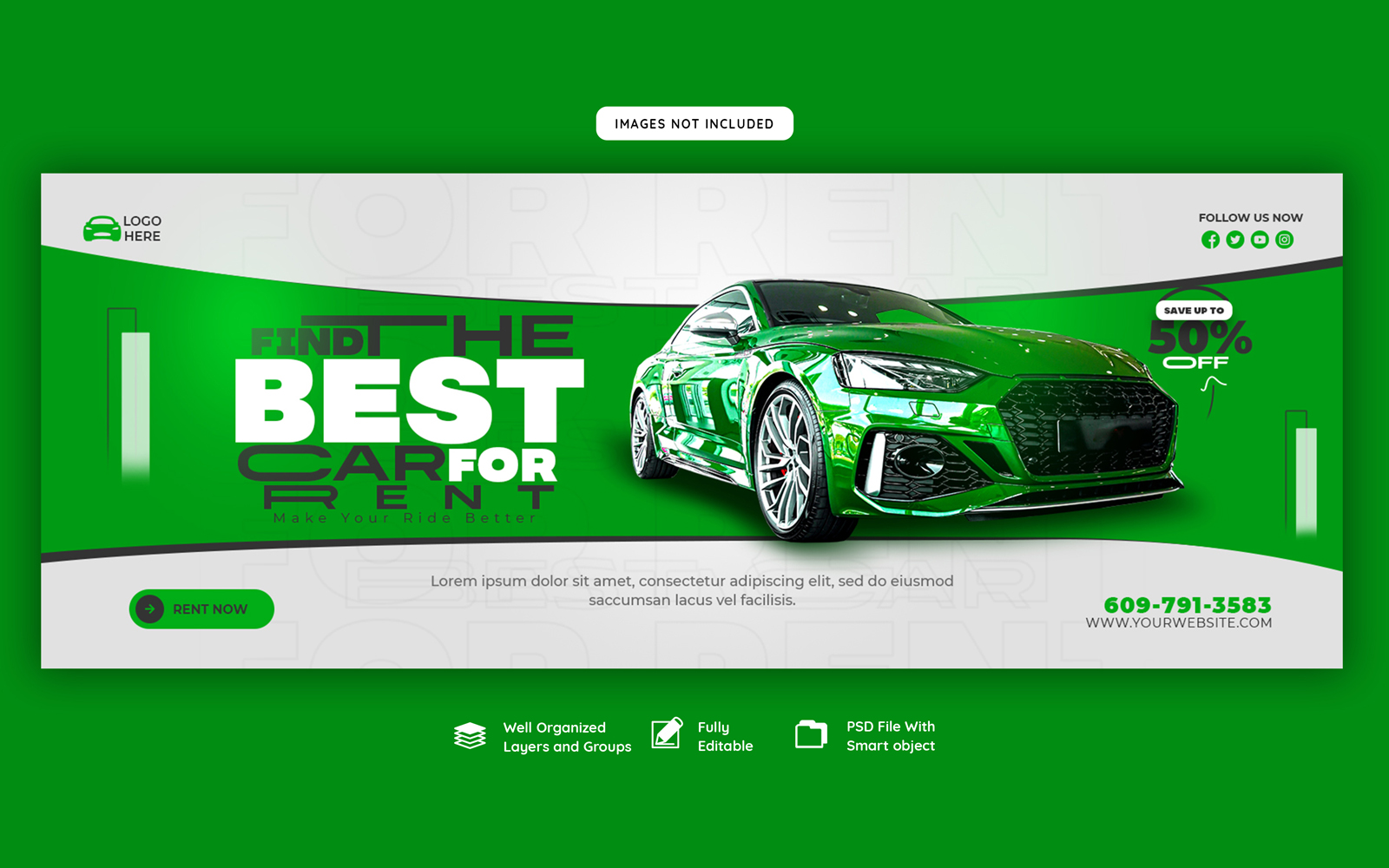 Car Rental Automotive Social Media CoverTemplate design are perfect for your business promotion. Ready to use for Multipurpose uses. This Promotion template best for any personal or corporate use. All main elements are editable and customizable. You can change image with the smart object. Latest design and easily photo change option.