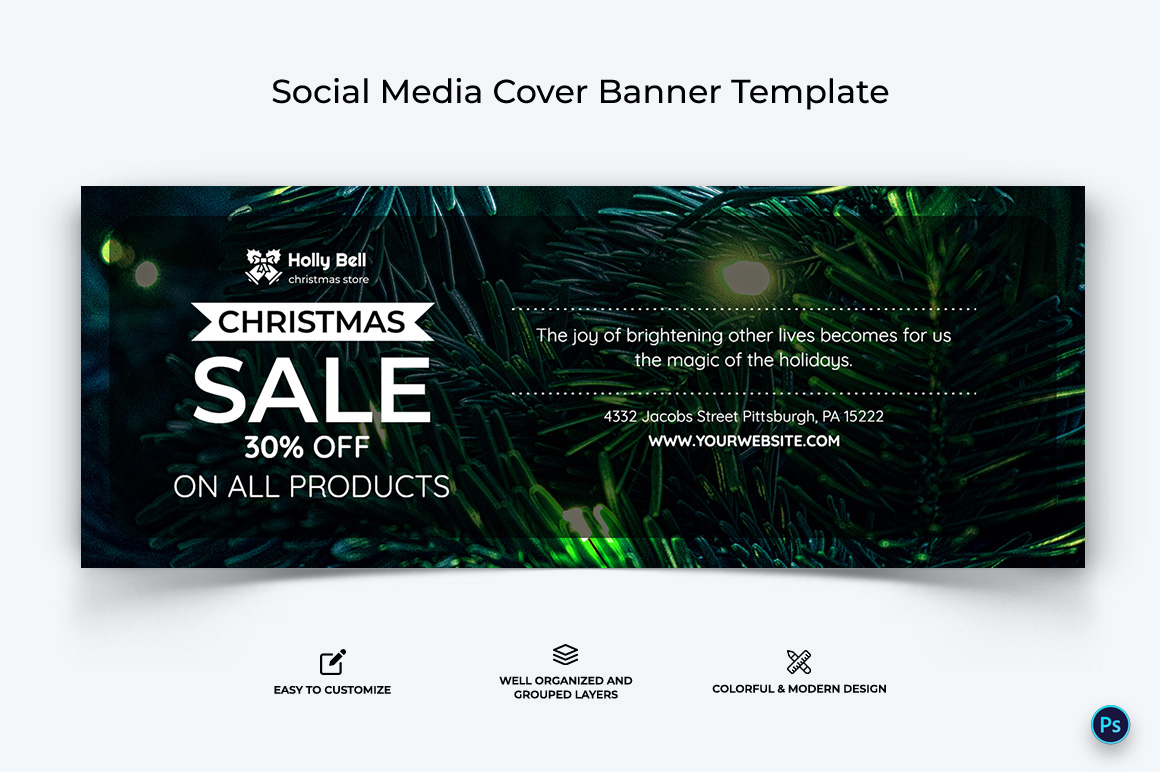 Christmas Sale Offer Facebook Cover Banner Design Template-08 Social Media