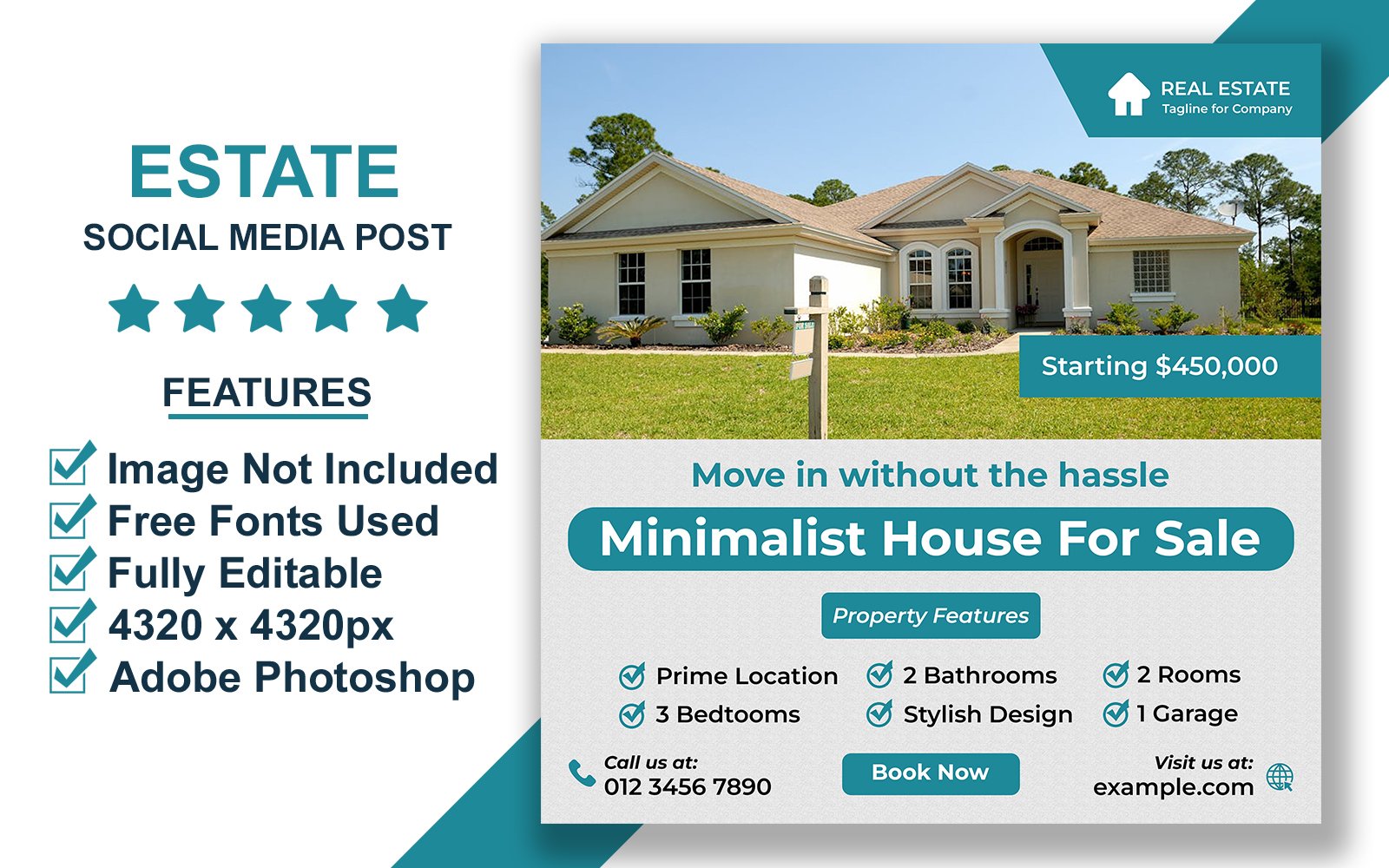 Clean Real Estate Social Post Template for Property Listings and Modern Realtor Promotions PSD Social Media