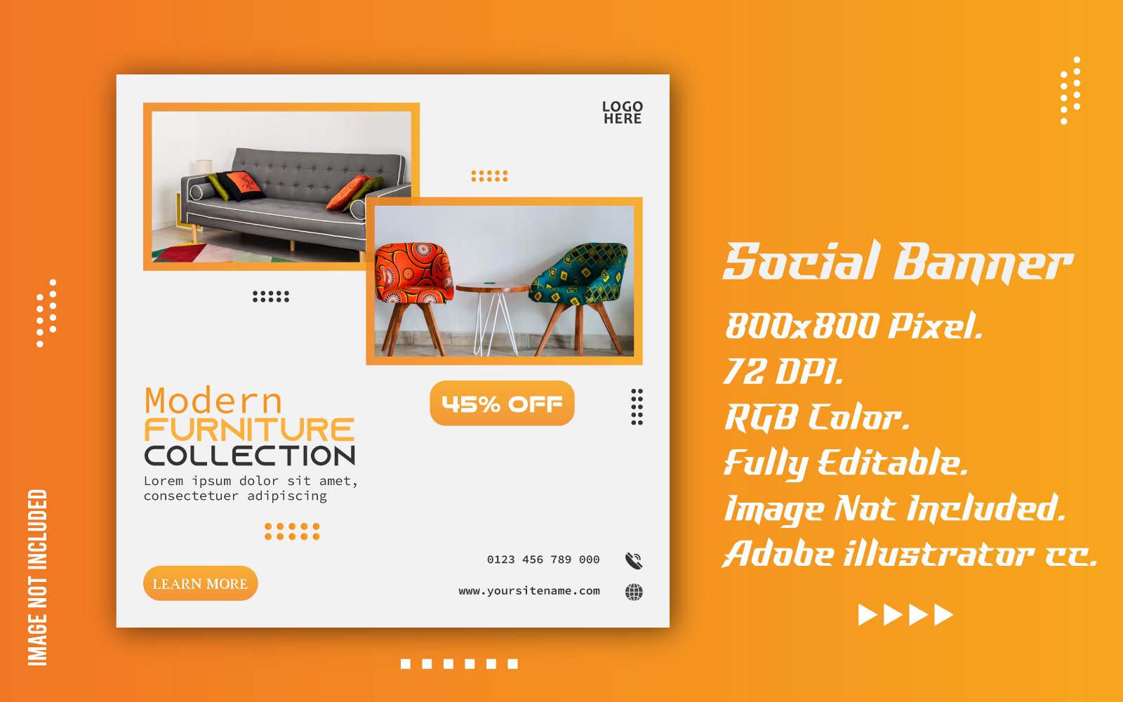 This is a Social media sale banner template. Created by Adobe Illustrator. The latest design, easy photo changing options, and free fonts have been used. All parts of the template included a photo to placeholders and the text area can be customized.