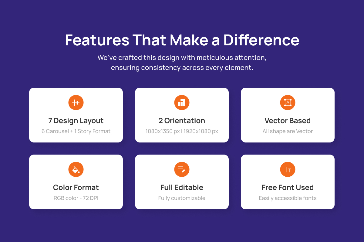 - 6 Carousel Portrait Size (1080x1350 px) & 1 Story Size (1080x1920 px)