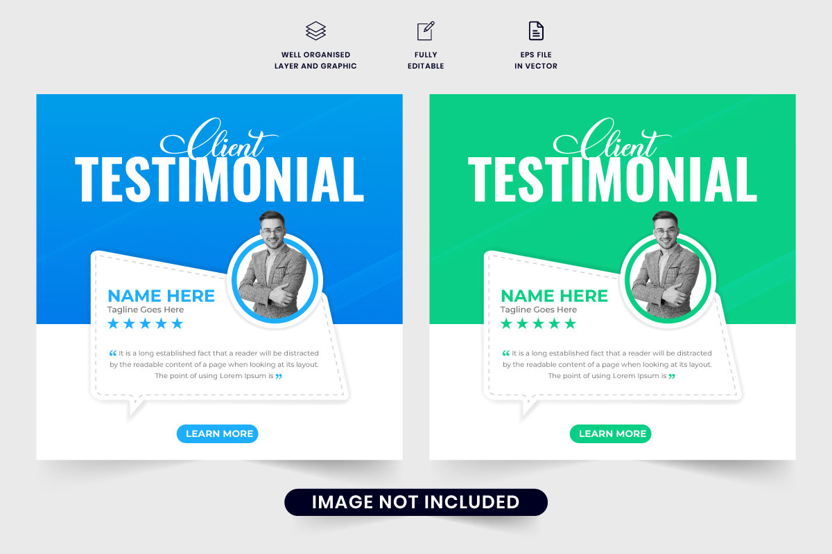 Customer feedback review layout vector. Client testimonials testimonial template vector with blue and green colors. Customer feedback template design with star ratings. Customer feedback review or testimonial layout vector.