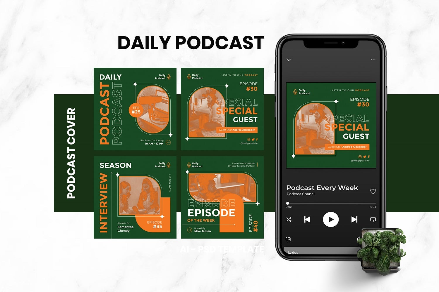 This Podcast Cover template has fully editable and customizable PSD and AI files. This Podcast Cover template also has creative style, and it's suitable for your any purpose such as: podcast, influencer, show and can be also used for any other publishing like marketing promotions and company profile.