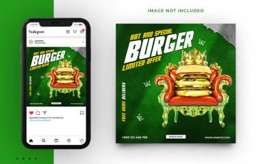 Burger Social Media Post Banner Template Clean and modern social media banner template designed to promote your business. This social media template perfect for any personal or corporate use. All main elements are editable and customizable. You can change the image with the smart object Template