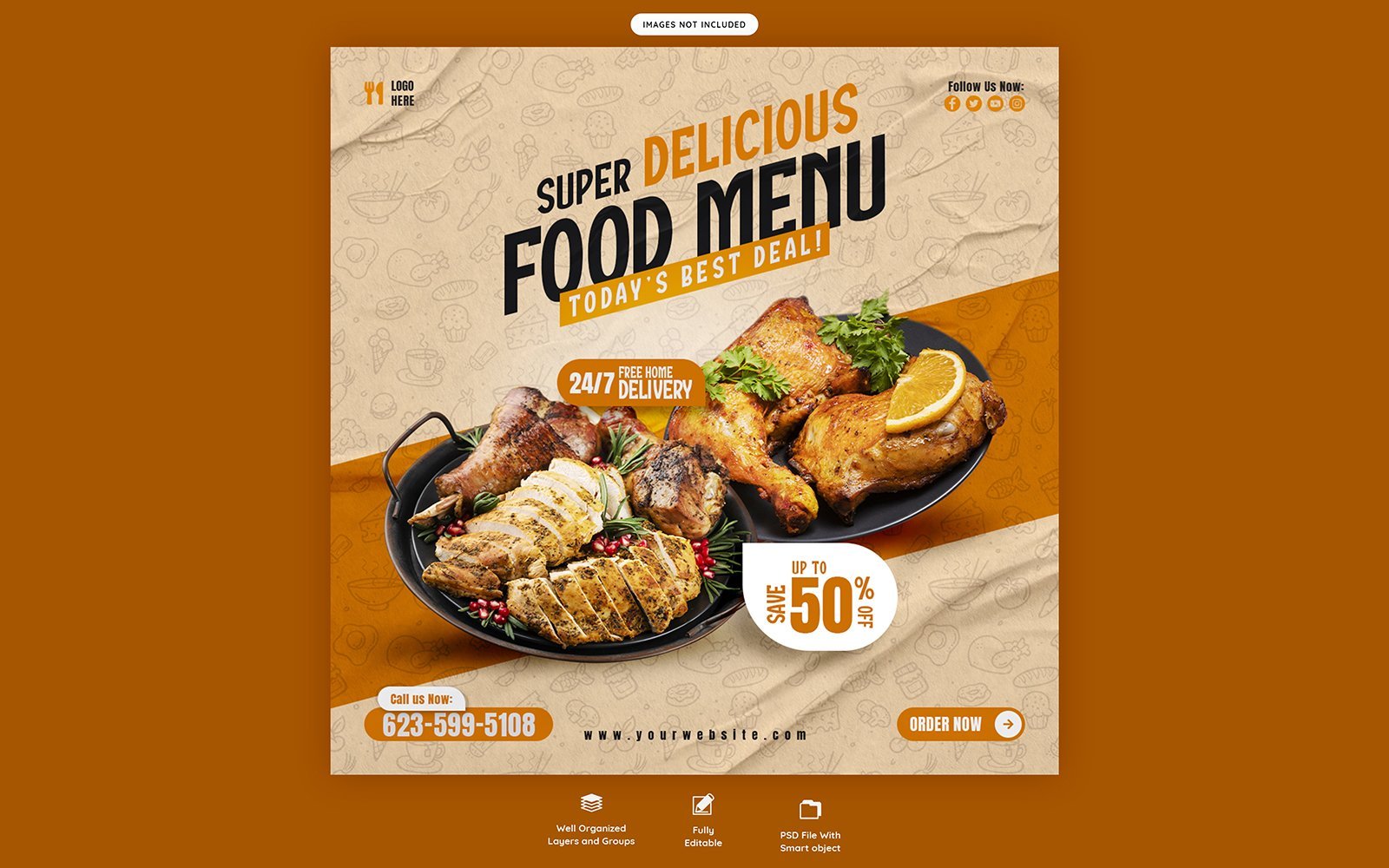 Delicious Food Menu Facebook Template design are perfect for your business promotion. Ready to use for Multipurpose uses. This Promotion template best for any personal or corporate use. All main elements are editable and customizable. You can change image with the smart object. Latest design and easily photo change option.
