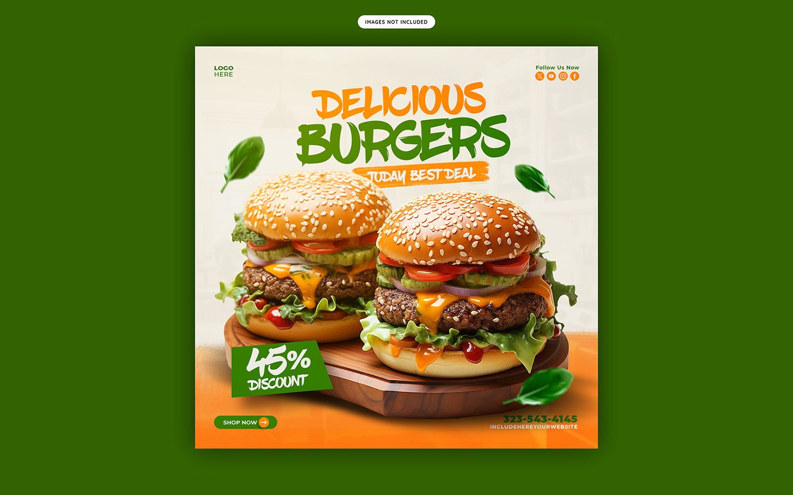 Delicious Food Social Media Template design are perfect for your business promotion. Ready to use for Multipurpose uses. This Promotion template best for any personal or corporate use. All main elements are editable and customizable. You can change image with the smart object. Latest design and easily photo change option.