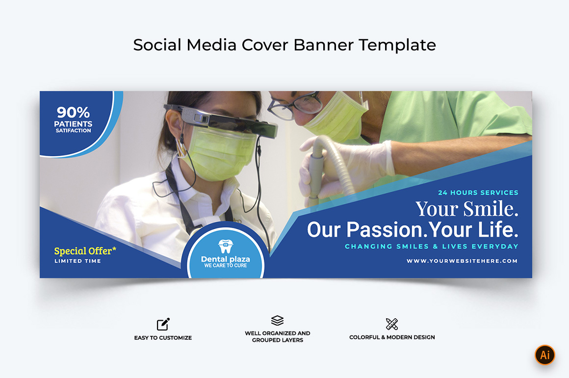 Dental Care Facebook Cover Banner Design-07 Social Media