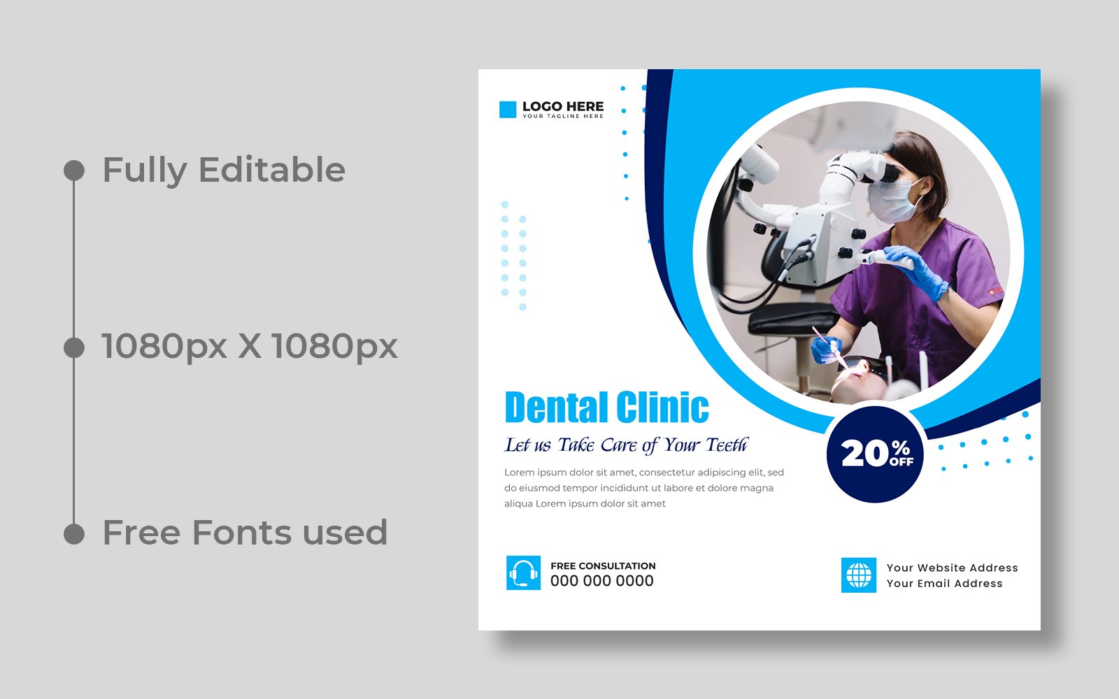 Promote your dental clinic with ease using this Dental Care Social Media Post Template, professionally designed in Adobe Illustrator for full customization. This modern and clean template is perfect for dentists, orthodontists, dental clinics, and oral health campaigns. With a professional layout, calming colors, and space for images and text, it’s designed to build trust and engage patients. Easily edit fonts, colors, and content to match your brand identity, whether you want to highlight services, share oral hygiene tips, or promote special offers. Optimized for social media platforms, this template ensures your posts look professional, eye-catching, and consistent. A great tool for boosting your online presence and connecting with your audience effectively.