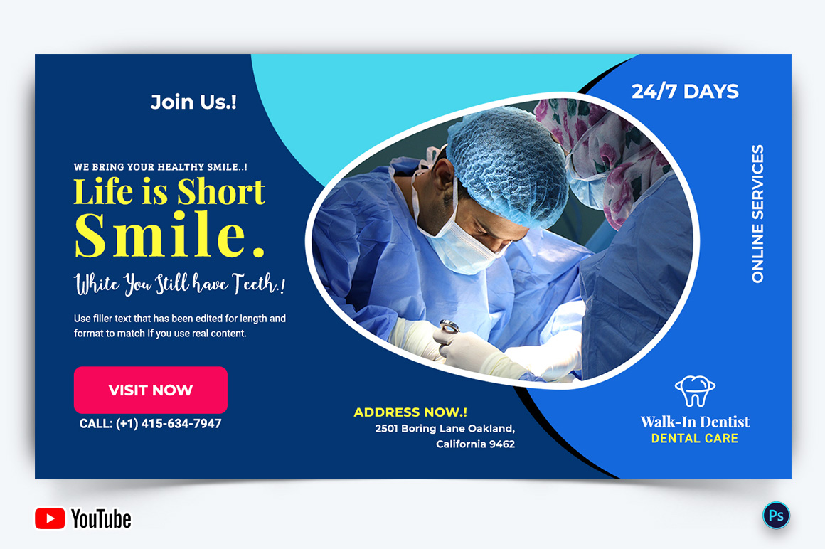 Dental Care YouTube Thumbnail Design Template-18 Social Media