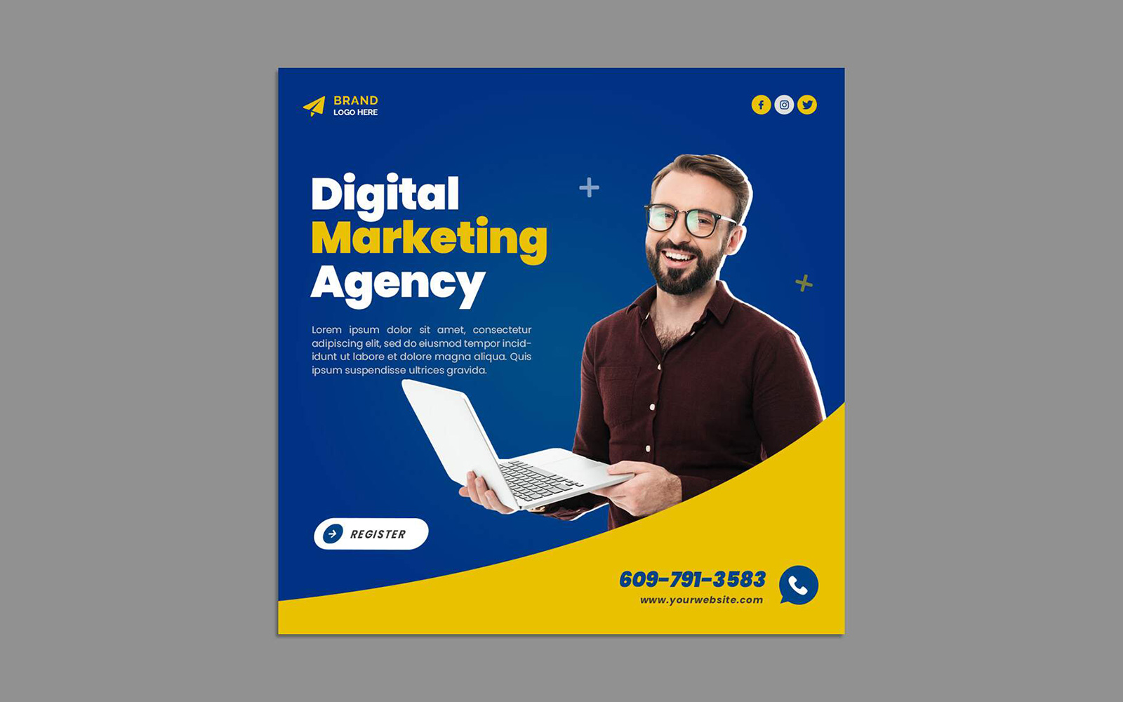 Marketing agency social media post design template. The files are very easy to edit. All you need to know is the very basics of Photoshop to change the text, Photos, Color, and everything