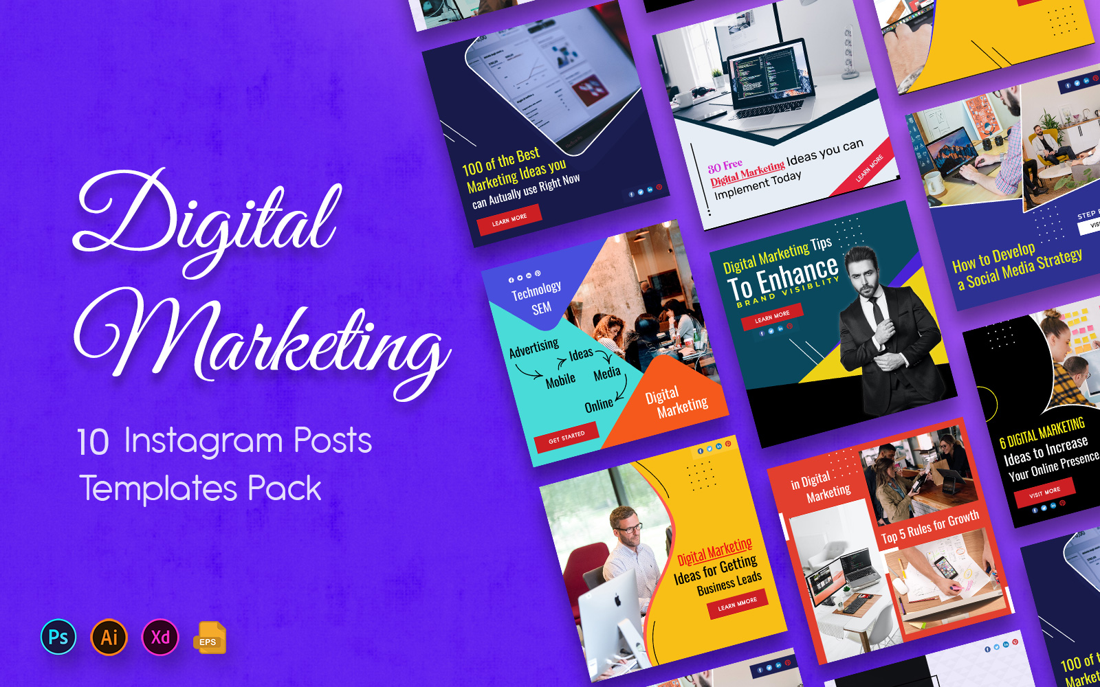 This Social Media Posts Templates contains 10 Beautiful and Elegant designs. Each templates are fully customizable and compatible with Adobe Photoshop, Illustrator and Adobe XD. You can easily update your Instagram Post in a Stylish and Colorful..!