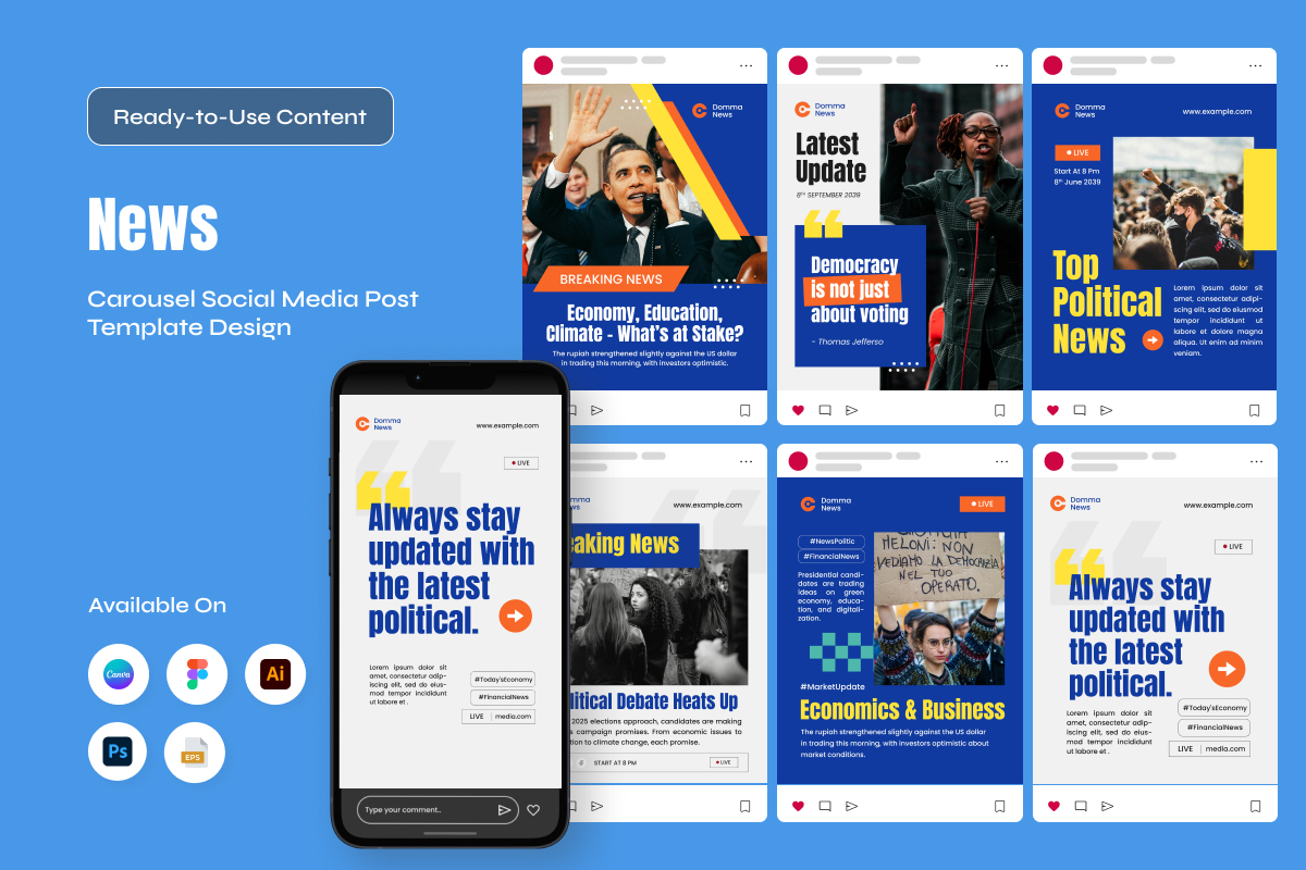 Perfect for journalists, online magazines, and broadcasters who want to deliver updates with professional speed and credibility. The clean and structured layout allows headlines, quotes, and data visuals to stand out clearly, making your content scroll-stopping and authoritative.