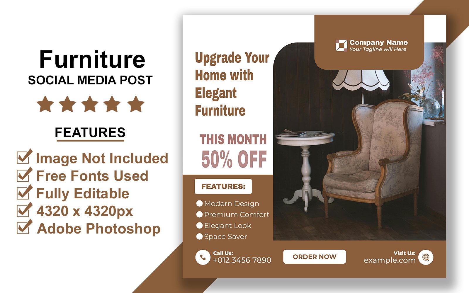 Dining Room Furniture Social Media PSD Template for Product Sales and Home Decor Ads