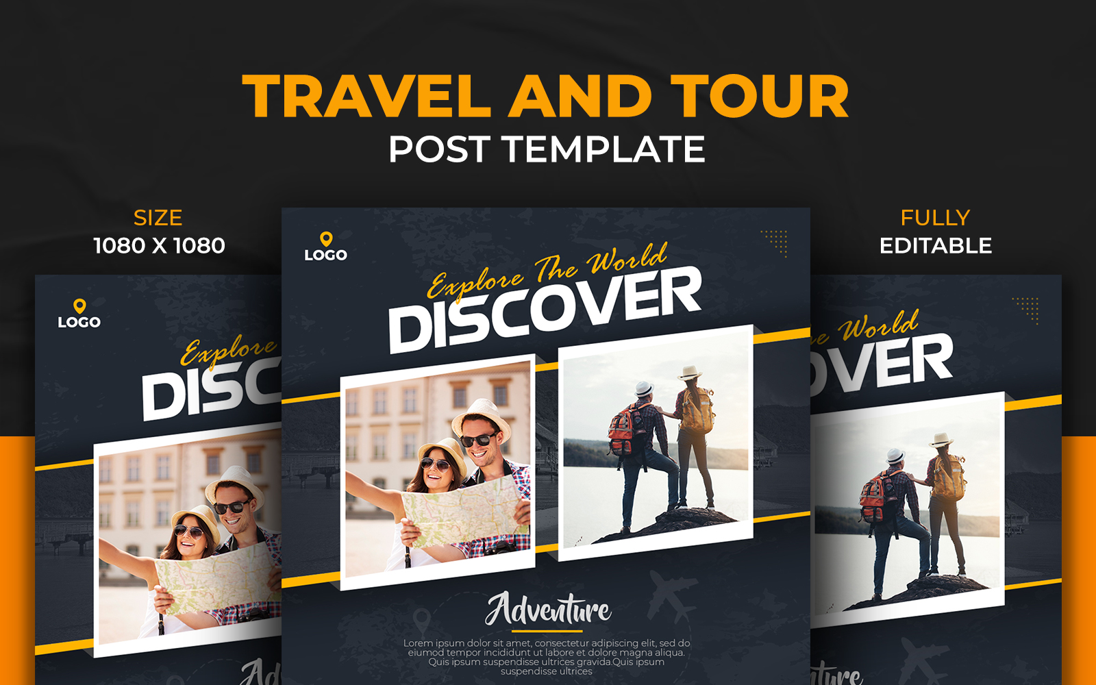 Travel and Tourism creative social media post template design is perfect for your business promotion. Ready to use for Multipurpose uses. This Promotion template best for any personal or corporate use. All main elements are editable and customizable. You can change image with the smart object. Latest design and easily photo changes option.