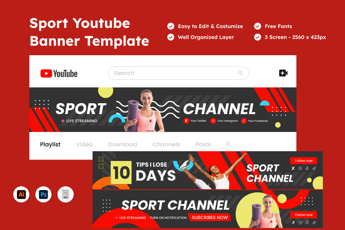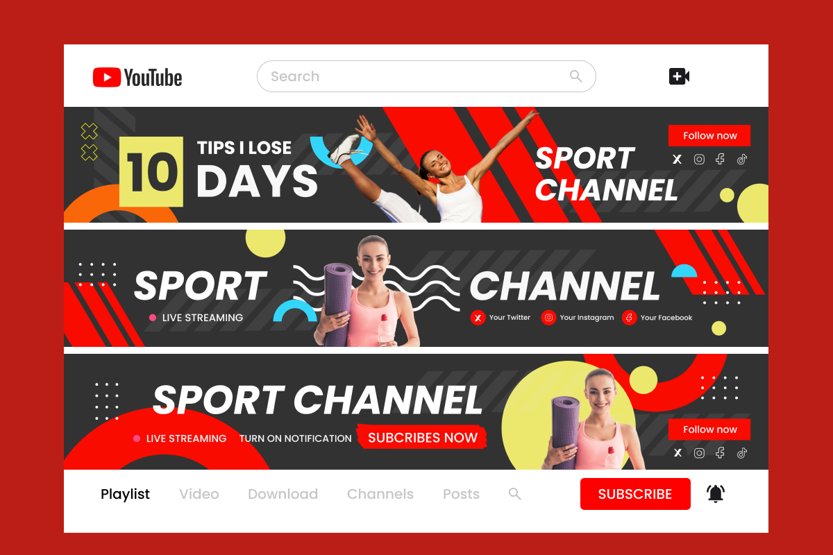 Showcase your athletic content with this professional and energetic YouTube banner. Ideal for sports channels, this design helps capture the energy and intensity of the sport.