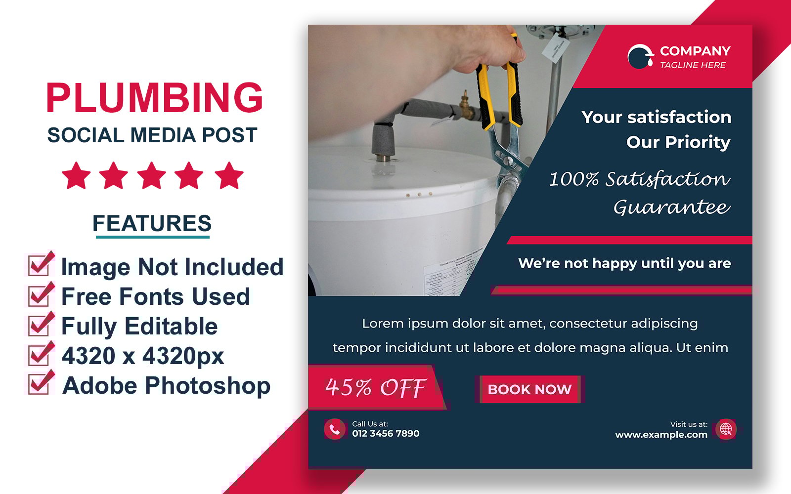 These editable PSD social media templates are tailored for plumbers and plumbing service providers looking to promote their offerings online. Built with Adobe Photoshop, each template is designed in a square 4320x4320px layout at 300 DPI for excellent clarity. Smart object image placement makes customization simple, while layered elements allow easy text and color editing. Highlight services like leak detection, pipe repairs, or emergency plumbing with a strong visual presence. These posts are ideal for Instagram, Facebook, and other digital platforms.