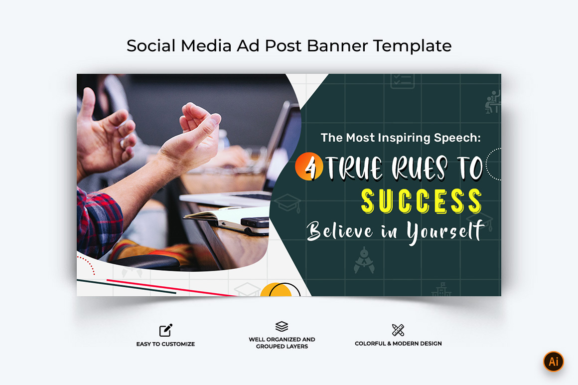 "Beautiful and Elegant Facebook Ad Banner Design Template. This Template is fully customizable and compatible with Adobe Illustrator. AI Files Included. Pixel Perfect. Modern and Creative Design. You can easily update your Facebook Ad Banner in a Stylish and Colorful!"