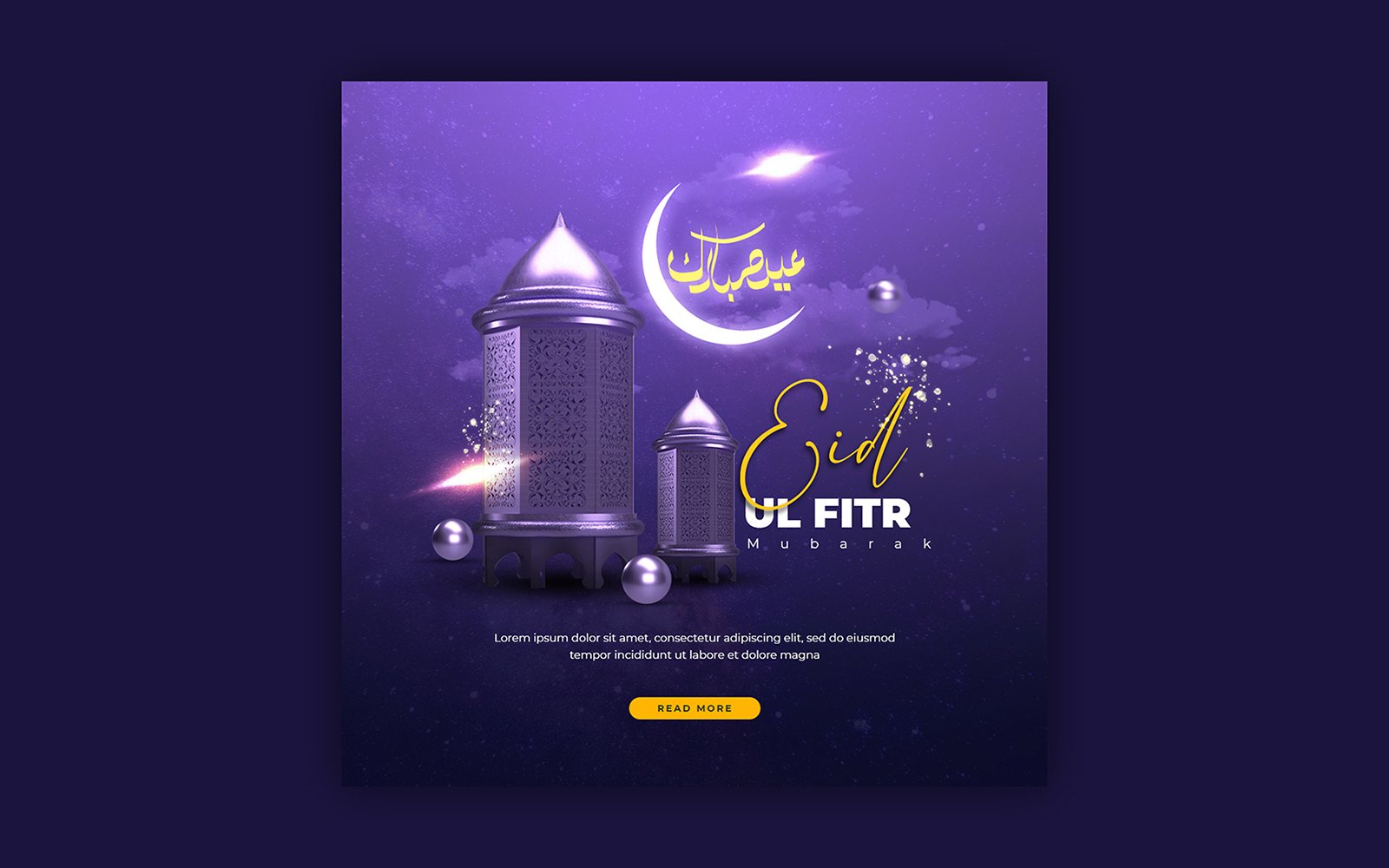 Eid Ul Fitr Social Media Template design are perfect for your business promotion. Ready to use for Multipurpose uses. This Promotion template best for any personal or corporate use. All main elements are editable and customizable. You can change image with the smart object. Latest design and easily photo change option.