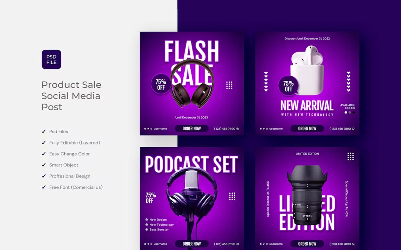 Electronic Social Media Post Template: Templates that are designed with a minimalist and modern concept can be used for the promotion of your business. You can do customization easily.