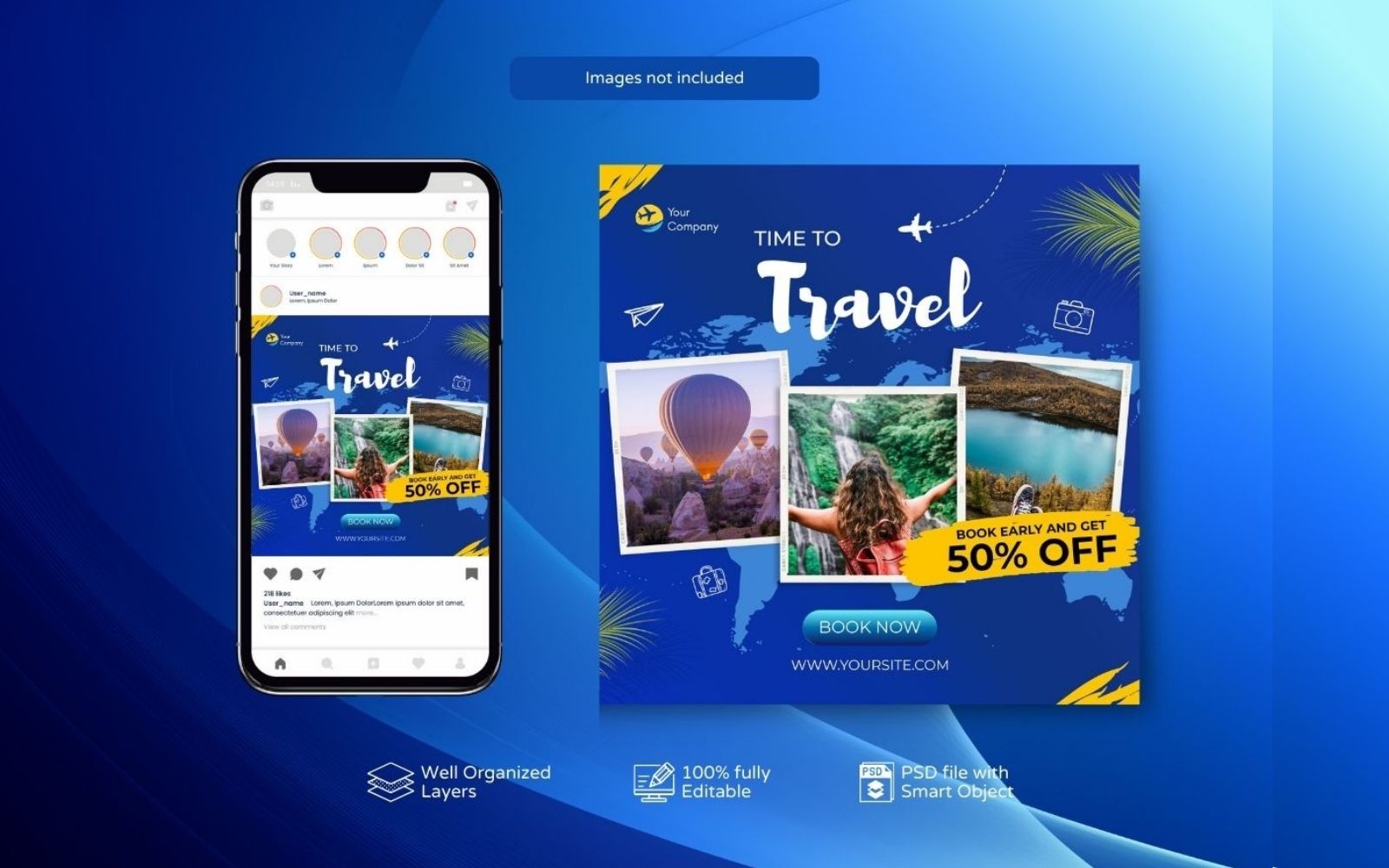 This is a clean eye-catchy Holiday Travel package Social Media post design template suitable for Travel agency businesses.