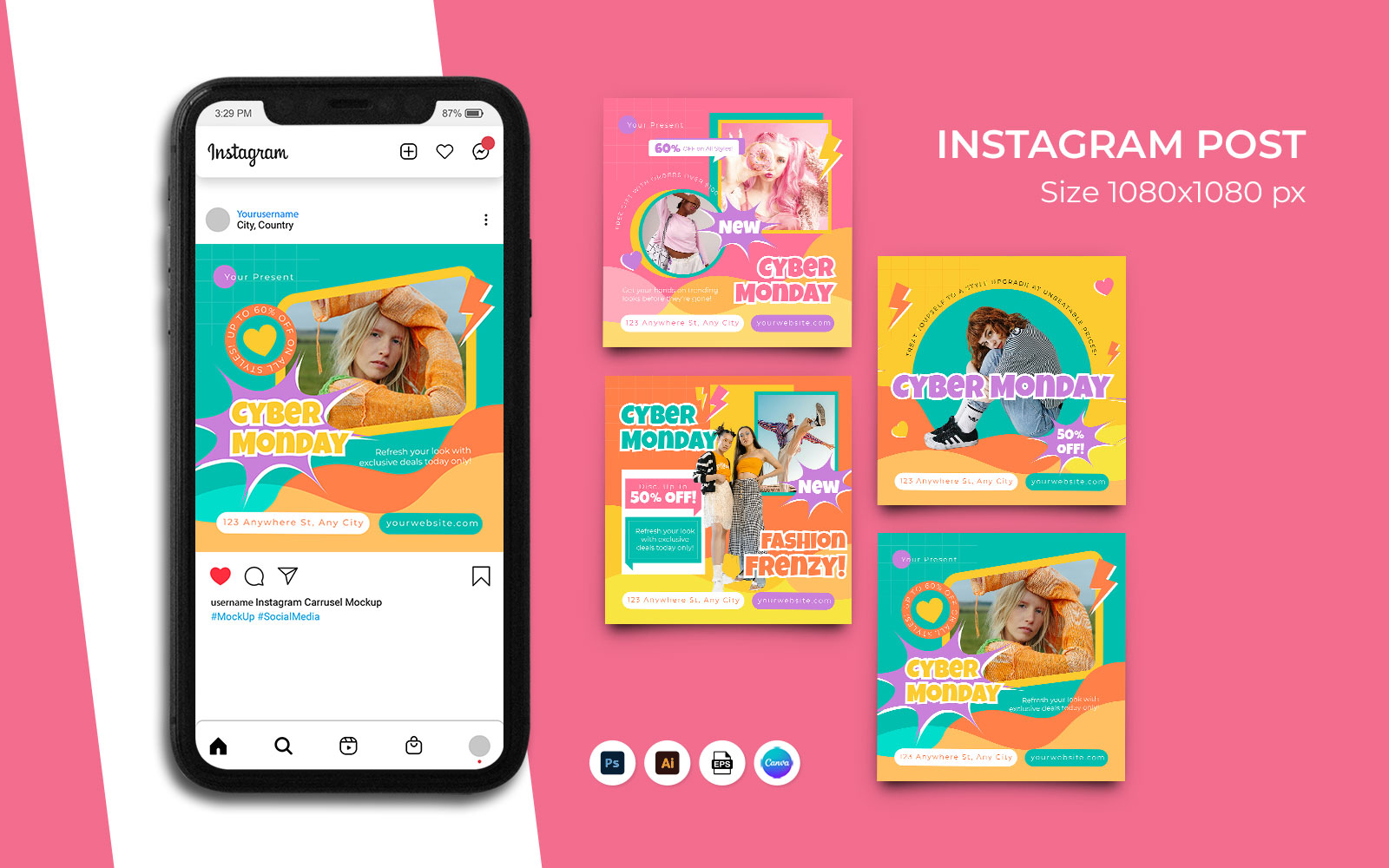 Fashion Cyber Monday Instagram Post Template Social Media