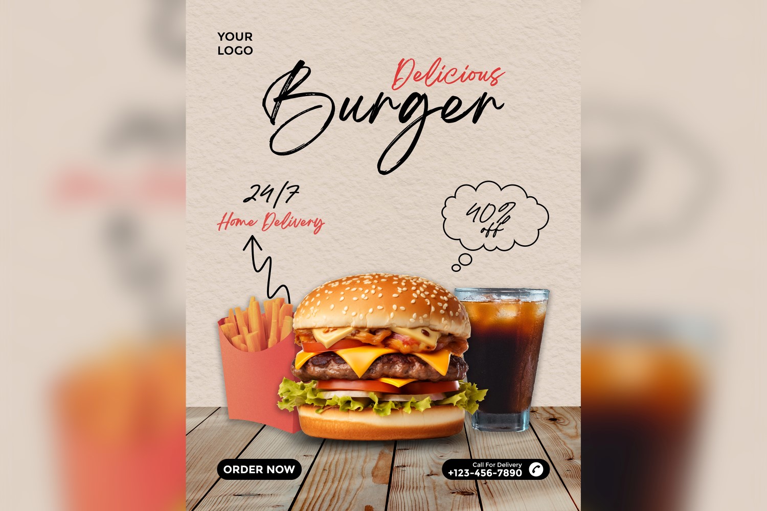 I aimed to make this poster visually appealing for food promotions, and you can use it for advertising and marketing your delicious offerings. This template will enhance your marketing efforts and engage your customers.