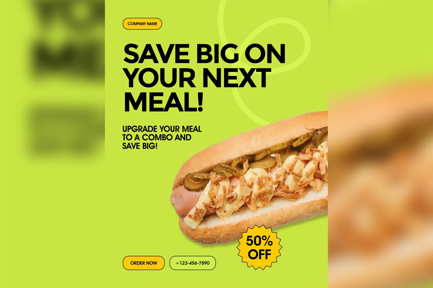 This template is designed for fast food restaurants, cafes, food trucks, and more. You can easily edit the colors, elements, images, texts, and many other features to fit your branding. This will also help you attract more customers and give your food business a more branded and consistent look.