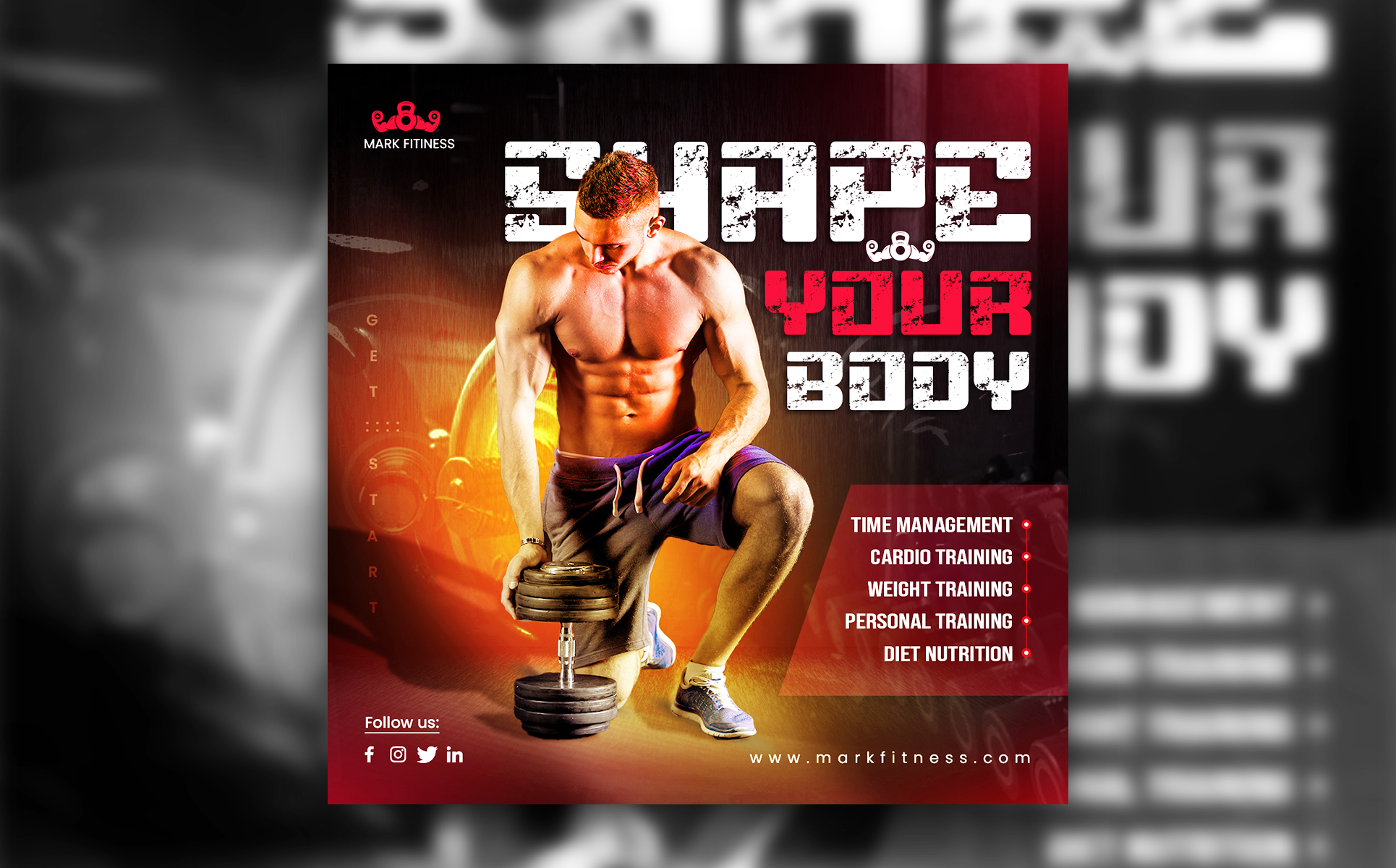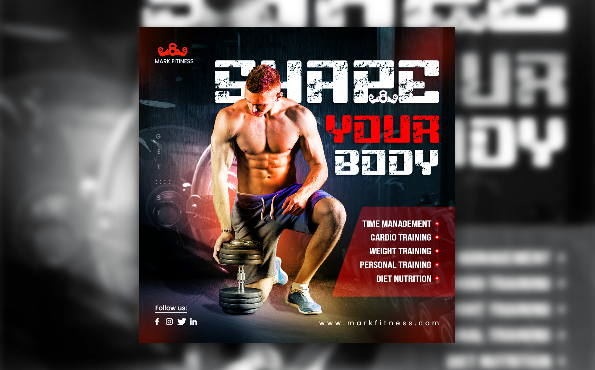 Working out at the gym is more effective than home exercises. If someone makes any mistakes in the fitness exercises at home no one can teach him/her the right way. But at gyms or fitness centers, there are experienced men/women gym/fitness trainers to teach people how to fit and lose extra fat. You can promote your business on social media and influence people to join the gym. This Advertising template helps you to get traffic from social media for your business