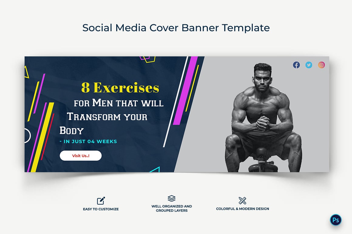 Fitness Facebook Cover Banner Design Template-06 Social Media