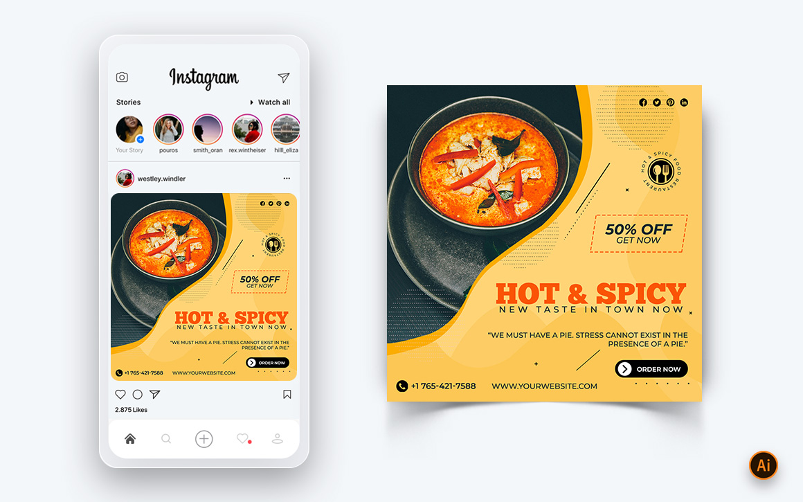 Food and Restaurant Offers Discounts Service Social Media Post Design Template-41
