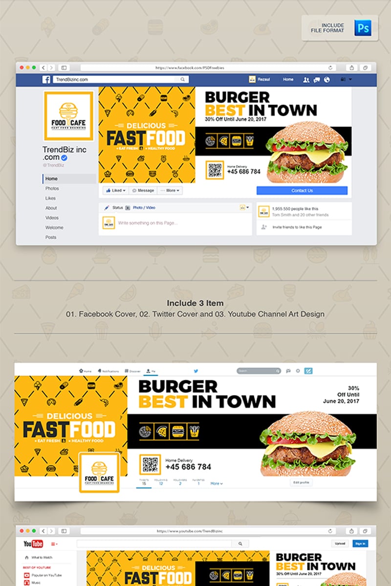 Food Company Cover : Facebook Cover Photo, Twitter Cover, YouTube Channel Art Social Media Template