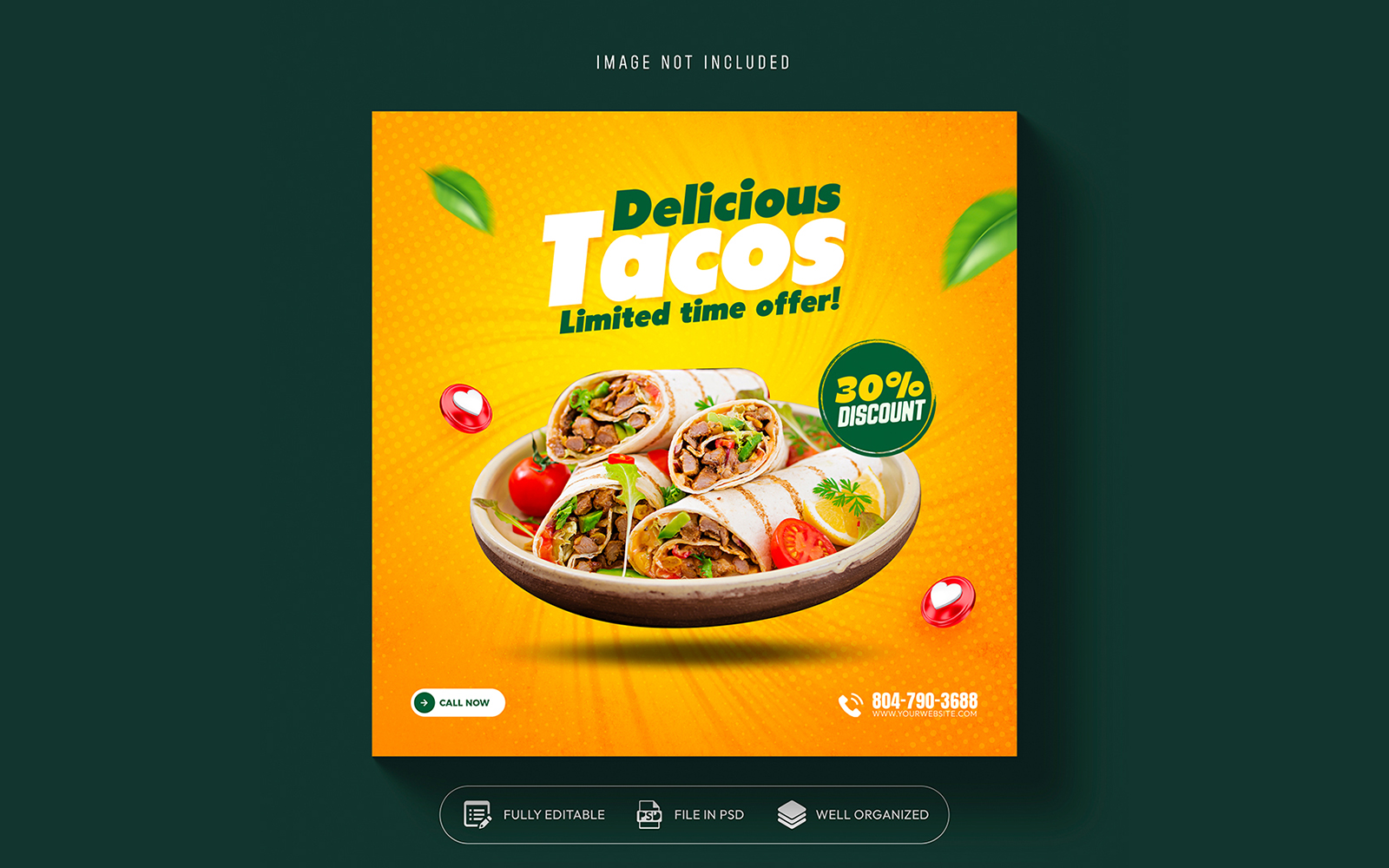 Food Discount Social Media Template design are perfect for your business promotion. Ready to use for Multipurpose uses. This Promotion template best for any personal or corporate use. All main elements are editable and customizable. You can change image with the smart object. Latest design and easily photo change option.