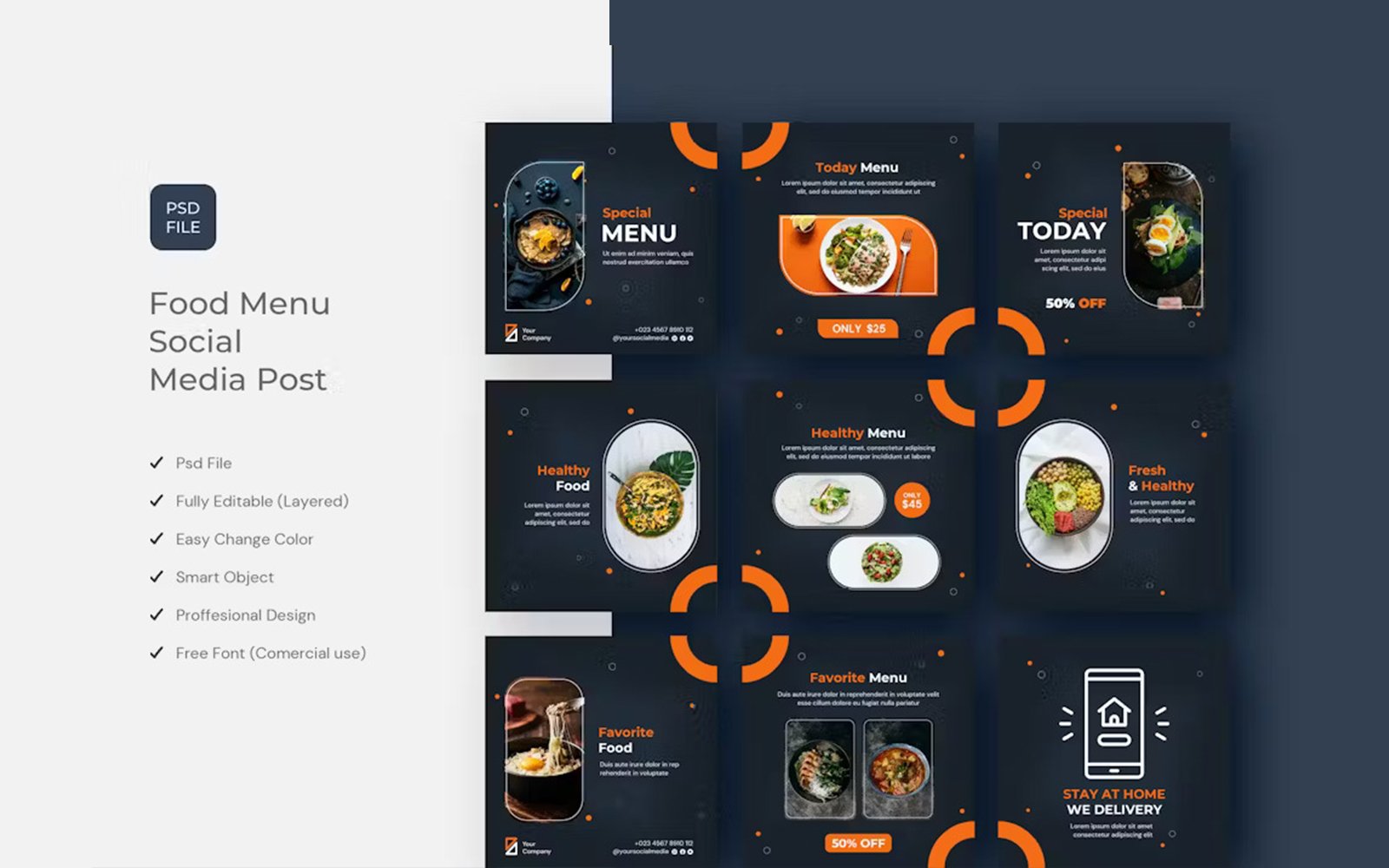 Food Social Media Feed Template: Templates designed with a minimalist and modern concept can be used for your business promotion. You can easily make customizations.
