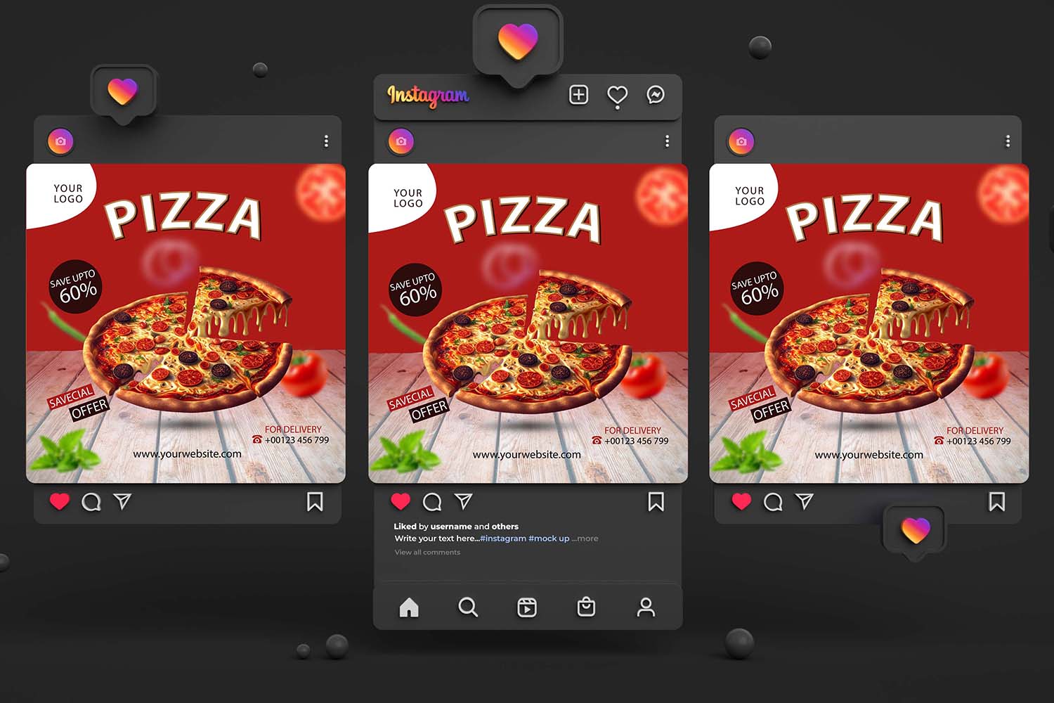 Pizza House Social Media suitable for promote your next any cafe, restaurant, food bar, fast food, food menu, cafeteria, bakery house, event, party. Design suitable for digital marketing. File very easy to use and well organized in folders and layers.