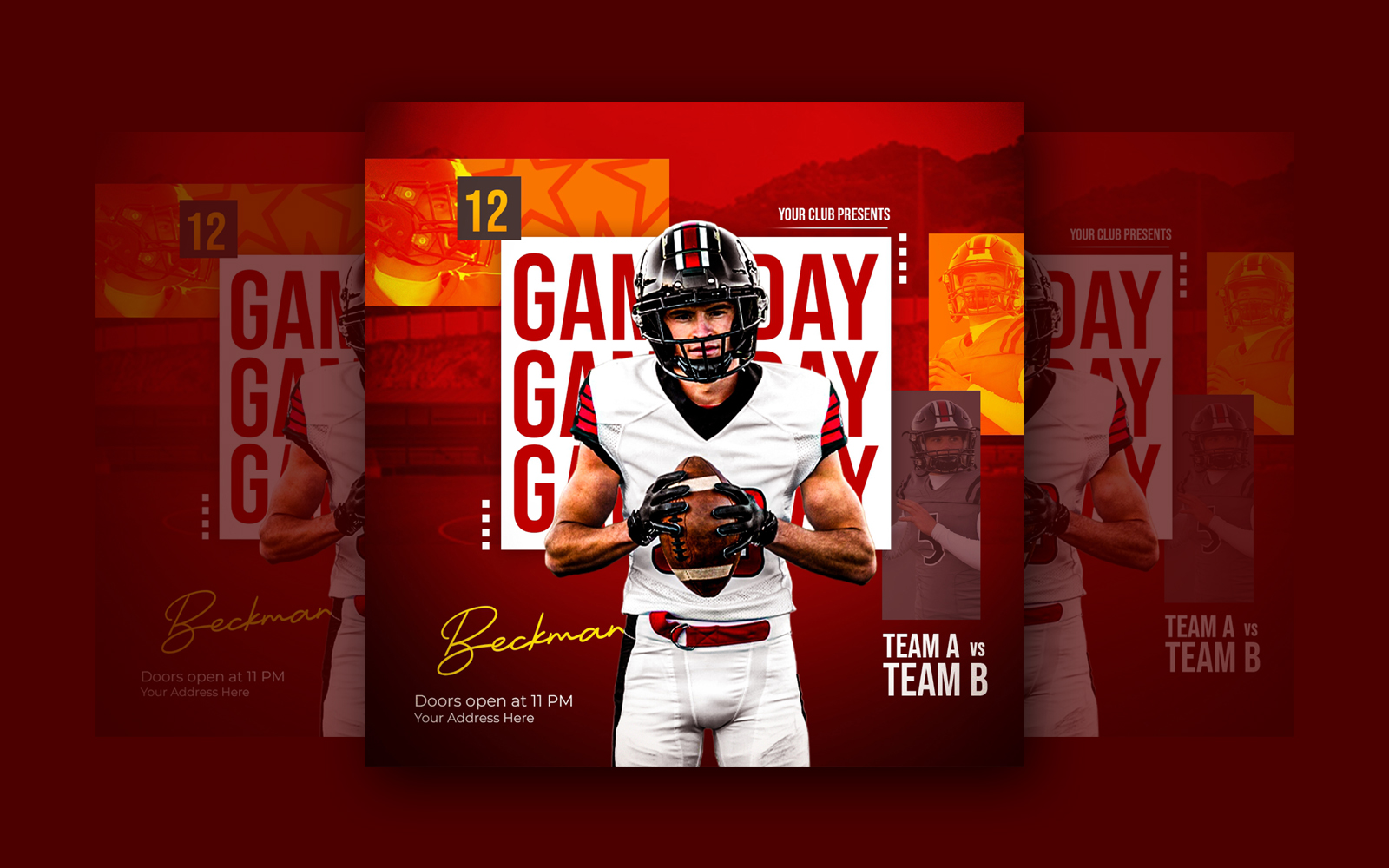 Football Club Social Media Post Template design are perfect for your business promotion. Ready to use for Multipurpose uses. This Promotion template best for any personal or corporate use. All main elements are editable and customizable. You can change image with the smart object. Latest design and easily photo change option.